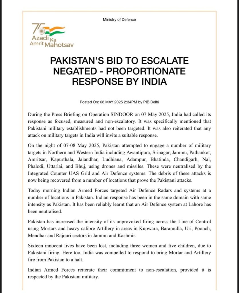 लाहौर में एक एयर डिफेंस सिस्टम को भारत ने निष्प्रभावी किया –
