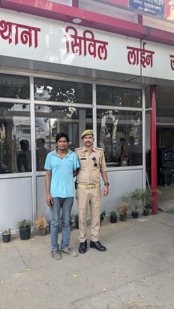 मुजफ्फरनगर से रूखशीद अहमद की रिपोर्ट। वरिष्ठ पुलिस अधीक्षक जनपद मुजफ्फरनगर के आदेश के अनुक्रम में वांछित/वारण्टी अपराधियो की गिरफ्तारी हेतु चलाये जा रहे अभियान के क्रम में पुलिस अधीक्षक एवं प्रभारी निरीक्षक थाना सिविल लाईन के कुशल नेतृत्व में थाना सिविल लाईन पुलिस द्वारा 01 अभियुक्त फुरकान पुत्र सलीम निवासी महमूदनगर थाना सिविल लाइन मुजफ्फरनगर को 01 नाजायज चाकू के साथ गिरफ्तार किया गया। अभियुक्त के खिलाफ कार्रवाई कर जेल भेजा जा रहा है।R