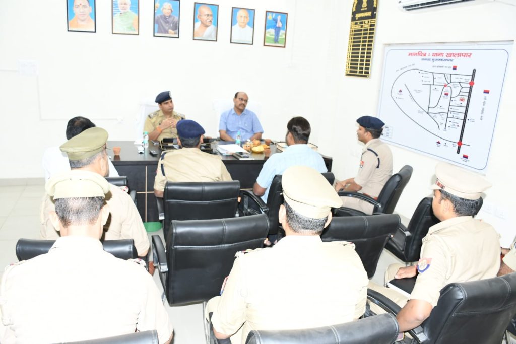 निरीक्षण उपरान्त जिलाधिकारी श्री उमेश मिश्रा व वरिष्ठ पुलिस अधीक्षक श्री संजय कुमार द्वारा थाना खालापार पर मीटिंग की गयी जिसमें उपस्थित अधिनस्थ अधिकारियों को क्षेत्र में कानून एवं सुरक्षा व्यवस्था सुद्ढ रखने हेतु आवश्यक दिशा-निर्देश दिये गये। इस दौरान अपर जिलाधिकारी श्री नरेन्द्र बहादुर सिंह, पुलिस अधीक्षक नगर श्री सत्यनारायण प्रजापत, क्षेत्राधिकारी नगर श्री राजू कुमार साव सहित अन्य अधिकारी मौजूद रहे।R