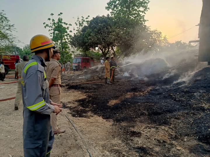 *प्लाईवुड फैक्ट्री में भीषण आग, आधी रात तक बुझाई गई — कोई जनहानि नहीं* लखीमपुर खीरी, जिले के ग्राम बुढ़नापुर (चौकी महेवागंज, थाना सदर कोतवाली) स्थित एक प्लाईवुड फैक्ट्री में आज सायंकाल भीषण आग लग गई। फैक्ट्री में रखे गन्ने की खोई (रॉ मैटेरियल) में अचानक आग भड़क उठी, जिससे क्षेत्र में अफरा-तफरी मच गई।सूचना मिलते ही फायर स्टेशन लखीमपुर खीरी की तीन फायर यूनिटों ने मौके पर पहुंचकर आग पर काबू पाने का प्रयास शुरू किया। आग के विकराल रूप को देखते हुए फायर यूनिट गोला, निघासन और पलिया की टीमें भी बुलानी पड़ीं। लगातार पंपिंग कर सभी टीमों ने समन्वय के साथ काम करते हुए मध्यरात्रि तक आग पर पूरी तरह काबू पा लिया।इस घटना में किसी प्रकार की जनहानि नहीं हुई है, लेकिन आग से फैक्ट्री को भारी नुकसान पहुंचने की आशंका जताई जा रही है। प्रशासन द्वारा जांच जारी है। *लखीमपुर खीरी से संवाददाता अनिल कुमार*