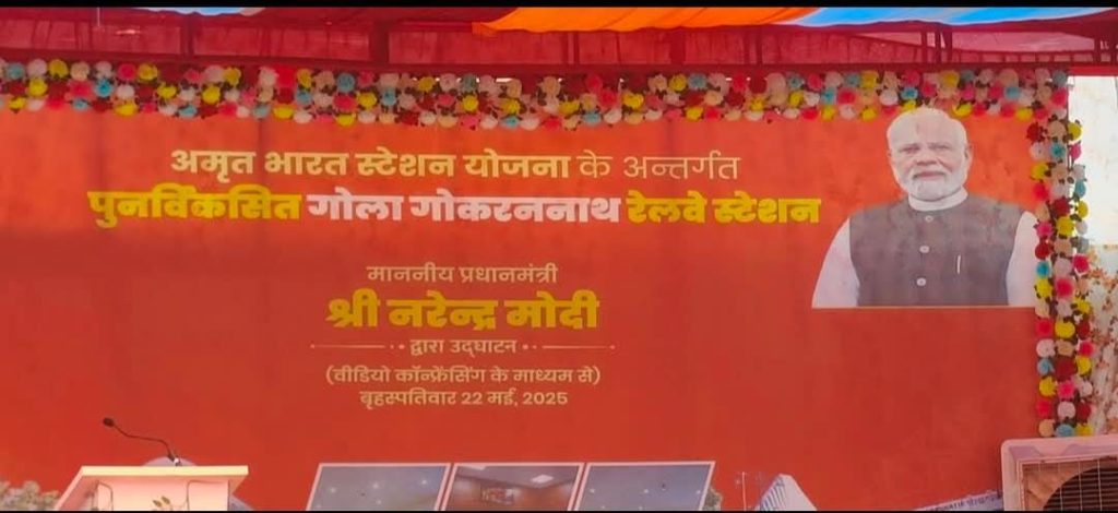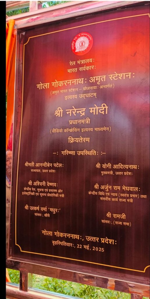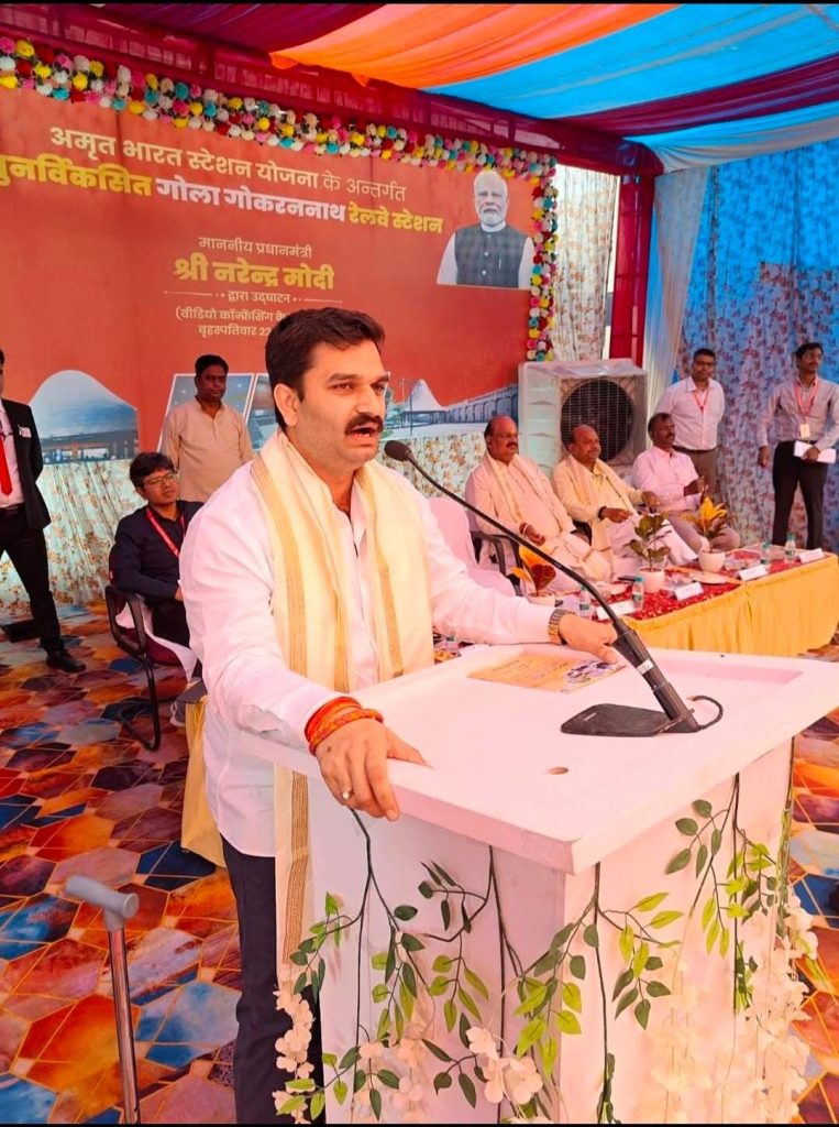 आज 22/5/2025 को विधानसभा गोला में अमृत भारत स्टेशन योजना के अन्तर्गत 103 पुनर्विकसित अमृत स्टेशनों में गोला गोकर्णनाथ स्टेशन का भी उदघाटन माननीय प्रधानमंत्री श्री Narendra Modi जी के द्वारा वीडियो कॉफ्रेंसिंग के माध्यम से किया गया, वही कार्यक्रम में स्कूली बच्चों के द्वारा वंदना गीत का प्रोग्राम किया गया जिसमें मुख्य अतिथि विधायक #अमन_अरविंद_गिरी जी रहे साथ में जिलाध्यक्ष भाजपा सुनील सिंह जी चेयरमैन रिंकू शुक्ला जी ब्लॉक प्रमुख विमल वर्मा जी अवधेश मिश्रा जी जिला उपाध्याय विनोद वर्मा जी शिव मंदिर अध्यक्ष प्रधान जनार्दन गिरी जी राम मोहन सोनी जी पंकज गुप्ता पूर्व सभासद जी भोली गिरी जी विजय मिश्रा जी पवन गुप्ता जी सुरजनलाल वर्मा जी रेलवे अधिकारी आरके सिंह जी रजनीश गुप्ता जी व भूतपूर्व सैनिक गढ़ व समस्त लोग मौजूद रहे ………….तहसील रिपोर्टर दीपक राठौर की खास रिपोर्ट विज्ञापन देने के लिए संपर्क करें 8009539 958