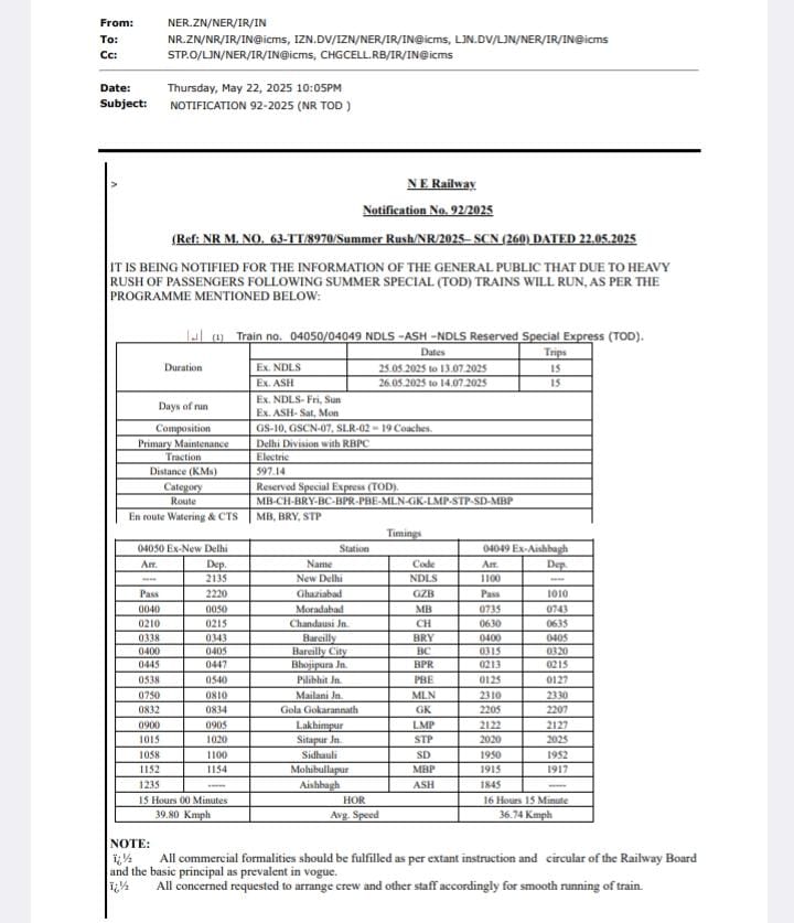** (सप्ताहिक ट्रेन)लखनऊ से सीतापुर, लखीमपुर, मैलानी जंक्शन भोजीपुरा,बरेली आदि स्टेशनों पर होते हुए नई दिल्ली तक एक्सप्रेस ट्रेन चलाई गई है,जिसमें लखीमपुर ब गोला गोकर्णनाथ क्षेत्र वासियों को बहुत हर्ष हो रहा है कि अब उन्हें यातायात सुविधाओं में कोई कठिनाई नहीं होगी!*गोला से MD रिपोर्टिंग इंचार्ज मोहम्मद शरीफ*