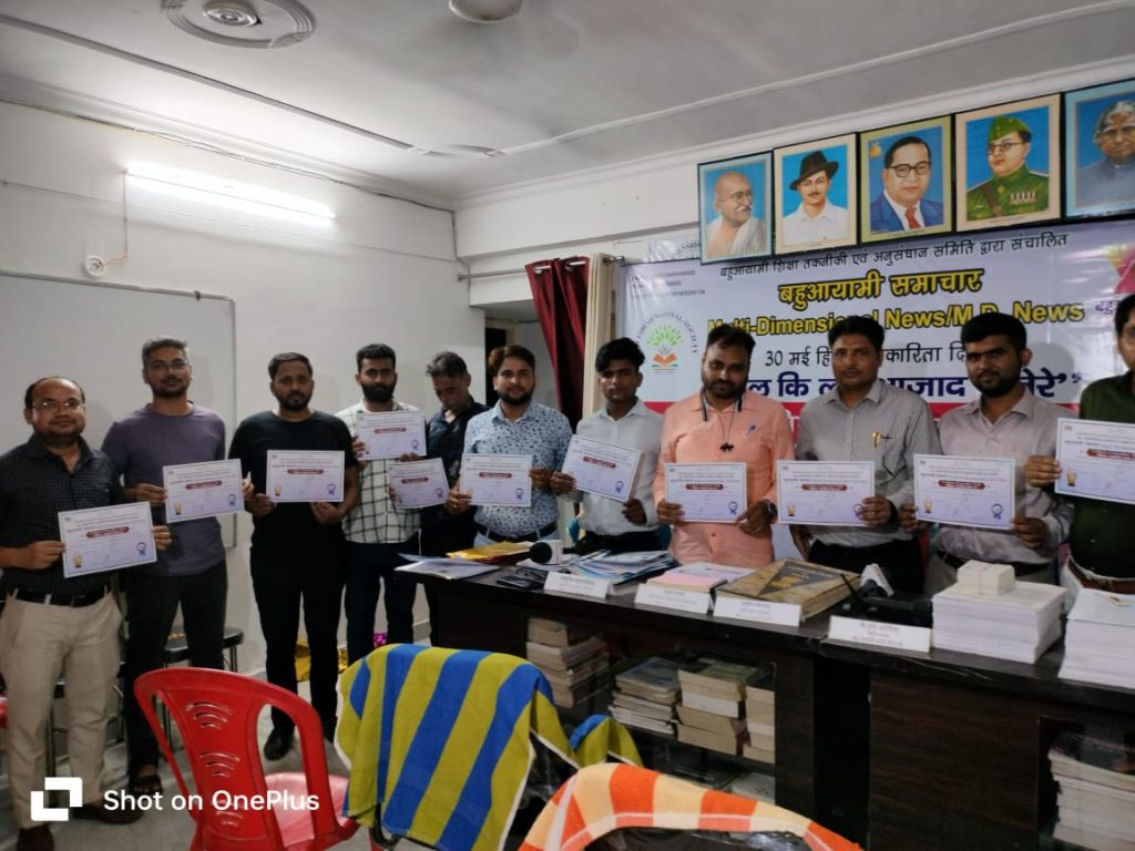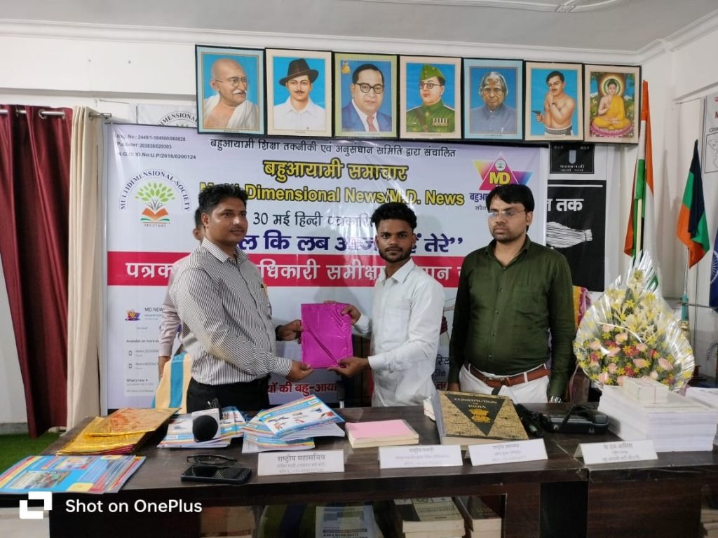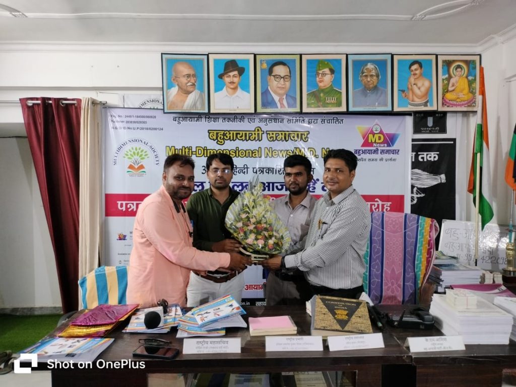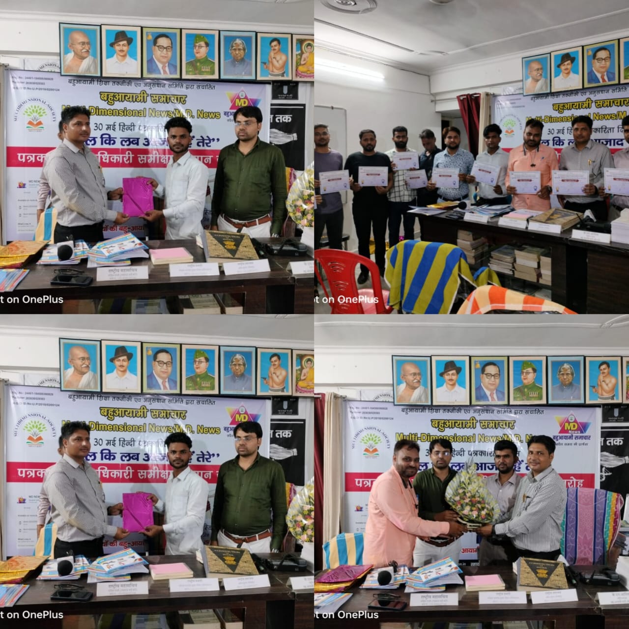 लखनऊ।दिनांक 30 मई 2025 हिंदी पत्रकारिता दिवस के शुभ अवसर पर बहुआयामी संस्था के अधीन कार्यरत बहुआयामी समाचार (एम. डी. न्यूज़ MD News )के राजधानी कार्यालय लखनऊ पर जनपद लखनऊ से जुड़े विभिन्न पत्रकारों को उनकी महत्वपूर्ण हिंदी लेखनी को ध्यान में रखकर पत्रकारिता प्रमाण पत्र व बदलते परिवेश, बढ़ती तकनीकी पत्रकारिता के क्षेत्र में दिन पर दिन हो रहे बदलाव,एवं पत्रकारिता के आयाम को ध्यान में रखकर बहुआयामी पत्रकारिता समाधान पत्रिका का विमोचन कर सभा में आए सभी पत्रकार बंधुओ को निशुल्क वितरित की गयी।