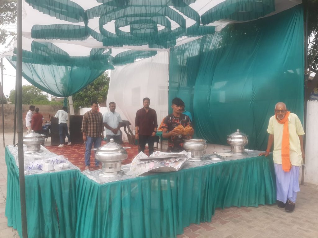 लखीमपुर खीरी के निघासन मे जेष्ठ के चौथे बड़े मंगल को कोतवाली के बाहर विशाल भंडारा का किया गया आयोजन निघासन कोतवाली प्रभारी के सुपुत्र संजय कुमार व समस्त स्टाफ के द्वारा कराया गया विशाल भंडारे का आयोजन।भंडारे में बड़ी संख्या में भक्त इकट्ठा हुए।निघासन पुलिस के द्वारा भंडारे मे प्रसाद बांटा गयाभंडारे के कार्यकर्ताओं ने बताया यह भंडारा हर वर्ष इसी स्थान पर होता रहेगा। भंडारे मे सब्जी,पूड़ी, बूंदी और ठंडे जल की व्यवस्था की गई है। उन्होंने बताया की भंडारे का मुख्य उद्देश्य मनरेगा और दिहाड़ी मजदूरों तक भोजन और ठंडा पेयजल पहुंचाना है। भंडारे में लोगों ने ज्यादा से ज्यादा प्रसाद ग्रहण किया