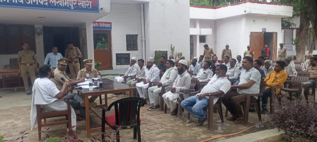 लखीमपुर/नीमगांव में मितौली नायब तहसीलदार और थाना प्रभारी की अध्यक्षता में आगामी त्योहार की गई चर्चा मौलाना मौलवी और ग्राम प्रधान रहे मौजूद। आगामी त्यौहार को लेकर पीस कमेटी की महत्वपूर्ण बैठक आयोजित की गई बैठक की अध्यक्षता मितौली नायब तहसीलदार शशांक मिश्रा और थाना प्रभारी निरीक्षक आलोक कुमार धीमान ने संयुक्त रूप से की बैठक में क्षेत्र के मौलाना मौलवी ग्राम प्रधान और अन्य सम्भ्रांत व्यक्तियों ने हिस्सा लिया मीडिया प्रतिनिधि भी इस अवसर पर उपस्थित रहे बैठक का मुख्य उद्देश्य आने वाले त्योहार के दौरान क्षेत्र में शांति और सौहार्द बनाए था।नायब तहसीलदार शशांक मिश्रा ने कहा त्यौहार सभी लोग आपस मे मिलजुल कर मनाये प्रभारी निरीक्षक आलोक कुमार धीमान ने कहा खुले मे कुर्बानी न करे और न ही खुले मे अवशेष फेंकें।
