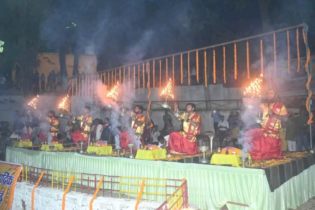 अंबिकापुर के शंकर घाट बांक नदी तट पर आयोजित बनारस की गंगा आरती,संध्या दीप प्रज्वलन दीप दान, भजन संध्या व विशाल भंडारा का आयोजन किया गया ।