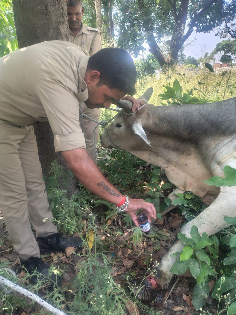 *खीरी पुलिस का सहरनीय कार्य देखने को मिला**लखीमपुर-खीरी* खीरी पुलिस का सहरनीय कार्य देखने को मिला। वैसे तो पुलिस लगातार बदनाम होती रहती है। वहीं उत्तर प्रदेश पुलिस में कांस्टेबल संजीव कुमार अपने अच्छे कार्य के लिए जाने जाते हैं आज इनकी नजर एक सांड पर पड़ी जो दर्द से कराह रहा था । और इसके पैर में बहुत ज्यादा जख्म था । इनसे रहा नहीं गया इन्होंने तुरंत अपने साथी व गांव के व्यक्ति के साथ मिलकर सांड की मरहम पट्टी करवाई। जिससे वहां के लोग इस कार्य के लिए कांस्टेबल संजीव कुमार की तारीफ की। पुलिस का एक चेहरा ऐसा भी होता है। कांस्टेबल संजीव कुमार इस समय ऐरा खमरिया थाना में पोस्ट और जहां जहां इनकी पोस्टिंग रहीं वहां वहां इन्होंने अच्छा कार्य किया।
