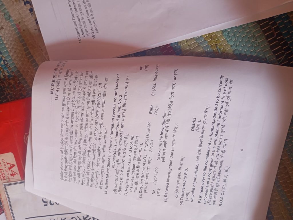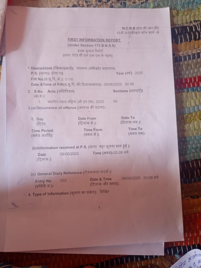 और थाना होलागढ़ में पीड़ित महिला ने लिखित तहरीर दिया और और होलागढ़ थानाध्यक्ष ने महिला को और महिला की 5 वर्षीय मासूम बच्ची को 3 दिन बैठाया गया था पीड़ित महिला की बाइट पर दिनांक 08/06/2025 को खबर प्रकाशित किया गया था और खबर असर हुआ दिनांक 09/06/2025 को थाना अध्यक्ष होलागढ़ ने प्रार्थीनी के तहरीर पर आरोपी हिमांशु कौशल के ऊपर मुकदमा संख्या 116 बीएनएस की धारा 69 में दर्ज किया गया।