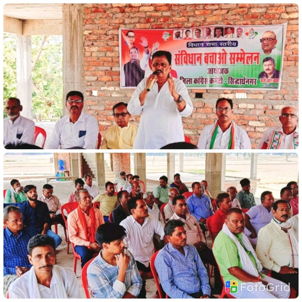 उत्तर प्रदेश 10 जून 2025 ( सूरज गुप्ता ) बांसी/सिद्धार्थनगर। विधानसभा क्षेत्र बांसी के बहादुरगंज चौराहा पर सोमवार को कांग्रेस पार्टी द्वारा विधानसभा स्तरीय संविधान बचाओ सम्मेलन आयोजित किया गया। सम्मेलन की अध्यक्षता कांग्रेस जिलाध्यक्ष काजी सुहेल अहमद ने तथा संचालन जिला उपाध्यक्ष कृष्ण बहादुर सिंह ने किया। सम्मेलन में बड़ी संख्या में क्षेत्रीय जनता उपस्थित थीं। इस अवसर पर कांग्रेस जिलाध्यक्ष काजी सुहेल अहमद ने कहा कि भाजपा सरकार लगातार लोकतंत्र का गला घोंट रही है और संविधान को कमजोर करके संविधान को बदलने का कुचक्र रच रही है, जिसे हम कांग्रेस पार्टी के लोग बर्दाश्त नहीं कर सकते हैं। संविधान की रक्षा के लिए कांग्रेस कार्यकर्ता हर कुर्बानी देने के लिए तैयार है। जिला उपाध्यक्ष कृष्ण बहादुर सिंह एवं अभिनय राय ने ने कहा कि बाबा साहेब डॉ0 भीमराव अम्बेडकर जी द्वारा रचित भारत का संविधान विश्व का सर्वश्रेष्ठ संविधान है। जिससे छेड़छाड़ की भाजपा सरकार की साजिश कभी सफल नहीं हो सकती है। जिला महासचिव राजन श्रीवास्तव एवं सतीश चन्द्र त्रिपाठी ने कहा कि राहुल गांधी जी के नेतृत्व में पूरा देश संविधान बचाने के लिए तैयार है। इस अवसर पर गंगेश्वर राय, लोकपति ओझा, रियाज मनिहार, गिरिजेश कुमार, पवन पाण्डेय, आसिफ रिज़्वी, पप्पू खान, होरी लाल श्रीवास्तव, डा0 प्रमोद कुमार, शिवकुमार दूबे, बजरंगी तिवारी, राम करन शर्मा, कपिलदेव निषाद, ऋषिकेश मिश्रा, राम कुमार गुप्ता, सर्वजीत मिश्रा, विश्वभर निषाद, जगदीश प्रसाद, इजहार अहमद, प्रवीण कुमार सिंह, पुजारी प्रजापति, अकबर अली, मुजीबुल्लाह, राजकुमार आजाद, हरेन्द्र चौरसिया, कौशलेन्द्र बहादुर सिंह, बबलू भास्कर, बालकेश भास्कर, गया प्रसाद सिंह, राजेश यादव, रवीन्द्र कुमार दूबे सहित तमाम कांग्रेस कार्यकर्ता उपस्थित थे।