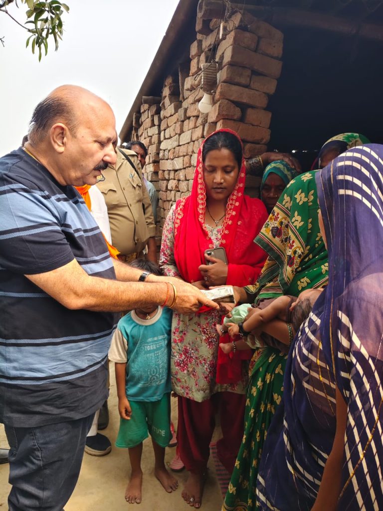 *विधायक रोमी साहनी ने पलिया विधानसभा क्षेत्र के ब्लॉक बांकेगंज में मृतक परिवारों में दिये साठ हजार 60000*पलिया विधानसभा के ब्लॉक बांकेगंज में सबसे पहले विधायक रोमी साहनी पहुंचे ग्राम अन्नापुर ग्रांट न0 11 में जहां पंकज गौतम पुत्र जमुना प्रसाद की नहर में डूबने से हो गई थी दर्दनाक मौत मृतक पंकज गौतम ही परिवार में कमाने वाले एक मात्र सहारा थे विधायक रोमी साहनी ने मृतक पंकज गौतम की पत्नी मीना देवी को 20000 बीस हजार रुपए की नगद मदद दी और सरकार से भी जल्द से जल्द आर्थिक सहायता पहुंचवाने की बात कही, तत्पश्चात विधायक पहुंचे ग्राम गंगापुर ग्रांट न0 10 वहां मृतक जागेश्वर पुत्र लालता प्रसाद की कुछ दिन पूर्व लड़ाई झगड़े की घटना में हो गई थी मौत, मृतक की पत्नी खिलौना देवी को विधायक रोमी साहनी ने दिए 20000 बीस हजार रुपए तत्पश्चात विधायक पहुंचे ग्रामसभा सुआबोझ के कपरहा कुआं गांव, वहां एक्सीडेंट में मृतक राजकुमार निषाद पुत्र मातासेवक की पत्नी मालती देवी और बच्चों को विधायक रोमी साहनी ने दी 20,000 बीस हजार रुपए की आर्थिक मदद की *रिपोर्ट सुशील कुमार*