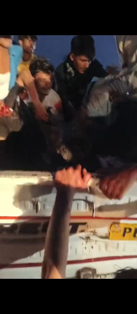 संवाददाता अजय कुमार पिकअप और बस की जबदस्त टक्कर हादसे में काफी लोगों की मौत की आ रही खबर टक्कर के बाद पिकअप में फंसे लोग तड़पते चिखते चिल्लाते नजर आ रहे । सड़क लाशें बिखरीं । खून से लथपथ लोग मचीं चीख पुकार आसपास के लोग मौके पर पहुंचे। गाड़ी में फंसे लोगों को बाहर निकालने मे कर रहे मदद पुलिस भी मौके पर पहुंच गई। रेस्क्यू का काम किया जा रहा है।