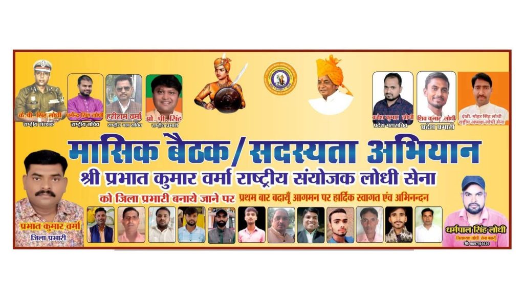 आज दिनांक 15 जून 2025 दिन रविवार को लोधी हाउस रसूलपुर बिलहरी बदायूँ पर जिलाध्यक्ष धर्मपाल लोधी की अध्यक्षता में मासिक बैठक एव सदस्यता अभियान का कार्यक्रम सम्पन्न हुआ, जिसमेें मुख्य अतिथि के रूप में संगठन के जिला प्रवासी प्रभारी एवं संगठन के राष्ट्रीय संयोजक लोधी प्रभात कुमार वर्मा जी रहे, उन्होंने संगठन के सभी कार्यकर्त्ताओं एवं सद्स्यों का मार्गदर्शन किया और आगे की रणनीति तय की, और राष्ट्रीय सचिव इजीo धर्मेंद्र सिंह लोधी एवं प्रदेश प्रभारी उत्तर प्रदेश शिवकुमार लोधी ने नवनियुक्त समस्त पदाधिकारियों को फूल माला पहनाकर और प्रमाण-पत्र देकर सम्मानित किया।