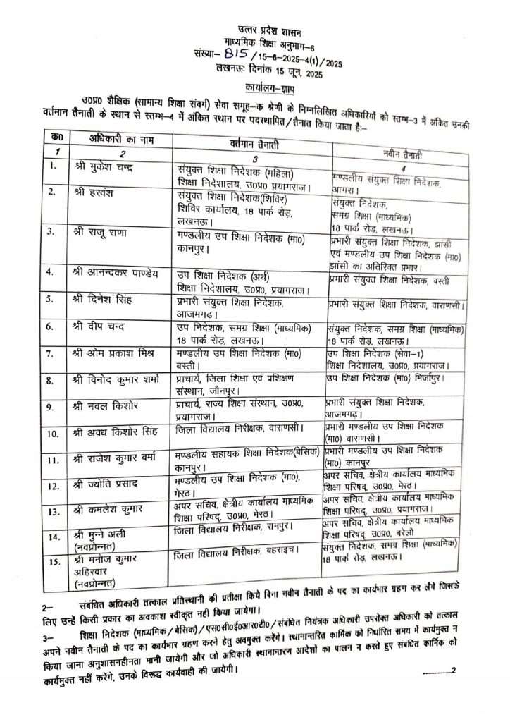 Share this: Click to share on Facebook (Opens in new window) Facebook Click to share on X (Opens in new window) X Click to share on LinkedIn (Opens in new window) LinkedIn Click to share on X (Opens in new window) X Click to share on WhatsApp (Opens in new window) WhatsApp Click to print (Opens in new window) Print Post navigation यूपी:माध्यमिक शिक्षा विभाग से बेसिक शिक्षा विभाग में 31 शिक्षाधिकारियों का हुआ तबादला.. देखें यूपी में 26 जिला विद्यालय निरीक्षकों(DIOS) का हुआ तबादला,देखें आदेश