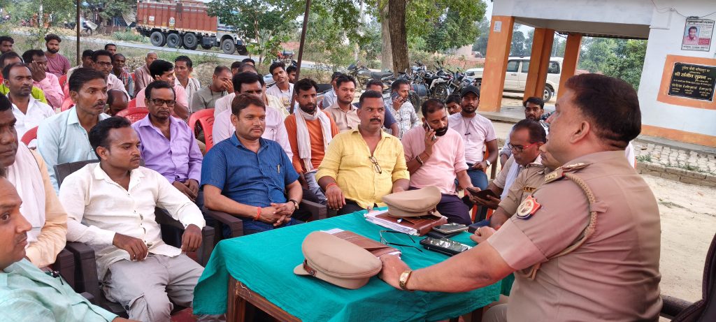 **किसी भी तरह के शस्त्रों का प्रयोग वर्जित**सरकार की गाइडलाइंस मानना होगा अनिवार्य**शाबान सिद्दीकी* फरधान खीरी।थाना क्षेत्र के पुलिस पिकेट मनिकापुर में मोहर्रम त्योहारों पर थाना प्रभारी निरक्षक ने ताजियेदारों से की अपील। थाना प्रभारी ने बताया त्योहारों का आनंद तभी है जब हम सब मिल बैठकर उस का आनंद लें। इसके साथ ही बताया कि किसी भी प्रकार की कोई नई परंपरा की शुरुआत नहीं की जाएगी। उन्होंने कहा कि जुलूस में किसी भी प्रकार का शस्त्र लेकर चलना सख्त मना है।हुड़दंगई करने वालों की खैर नहीं।रविवार की शाम 6 बजे मुहर्रम त्योहार को लेकर थाना प्रभारी निरक्षक ने पीस कमेटी की बैठक बुलाई। बैठक में क्षेत्र के ताजियादार व सभी समुदाय के व ग्राम प्रधान लोग मौजूद रहे। थाना प्रभारी दयाशंक द्विवेदी ने त्योहारों को शांतिपूर्ण ढंग से मनाने की अपील की।फरधान थाना क्षेत्र में रविवार की शाम 6 बजे मोहर्रम त्यौहार को लेकर थाना प्रभारी व चौकी इंचार्ज के के यादव के नेतृत्व में पीस कमेटी की बैठक बुलाई। इस दौरान थाना प्रभारी निरक्षक दयाशंकर द्विवेदी ने कहा कि त्योहारों को सौहार्दपूर्ण ढंग से मनाने की परंपरा हम सभी को बनाए रखनी है।ताजिया छोटा लाएं त्योहारों का आनंद तभी है जब हम सब मिल बैठकर उस का आनंद लें। इसके साथ ही बताया कि किसी भी प्रकार की कोई नई परंपरा की शुरुआत नहीं की जाएगी। उन्होंने कहा कि जुलूस में किसी भी प्रकार का शस्त्र लेकर चलना सख्त मना है। तलवार, चाकू, छुरी आदि का प्रदर्शन नहीं होगा। सभी लोगों को सरकार की गाइडलाइंस माननी पड़ेगी अन्यथा सख्त कार्रवाई निश्चित है। साथ ही अराजक तत्वों या किसी प्रकार का उपद्रव करने वालों की जानकारी तत्काल पुलिस को देने की अपील की। वही ताजियादारो से उनकी समस्याओं की जानकारी ली और शीघ्र समस्या दूर कराने का आश्वासन दिया। इस दौरान मंजीत कश्यप पूर्व प्रधान मन्योरा, ब्रजेश कुमार वर्मा प्रधान , मुस्तकीम अली ,इश्तियाक अली , मौलाना नसीर रजा , हनीफ अली , सलीम अली , अली अहमद , अमीन , कल्लन हुसैन इत्यादि लोग उपस्थित रहे।