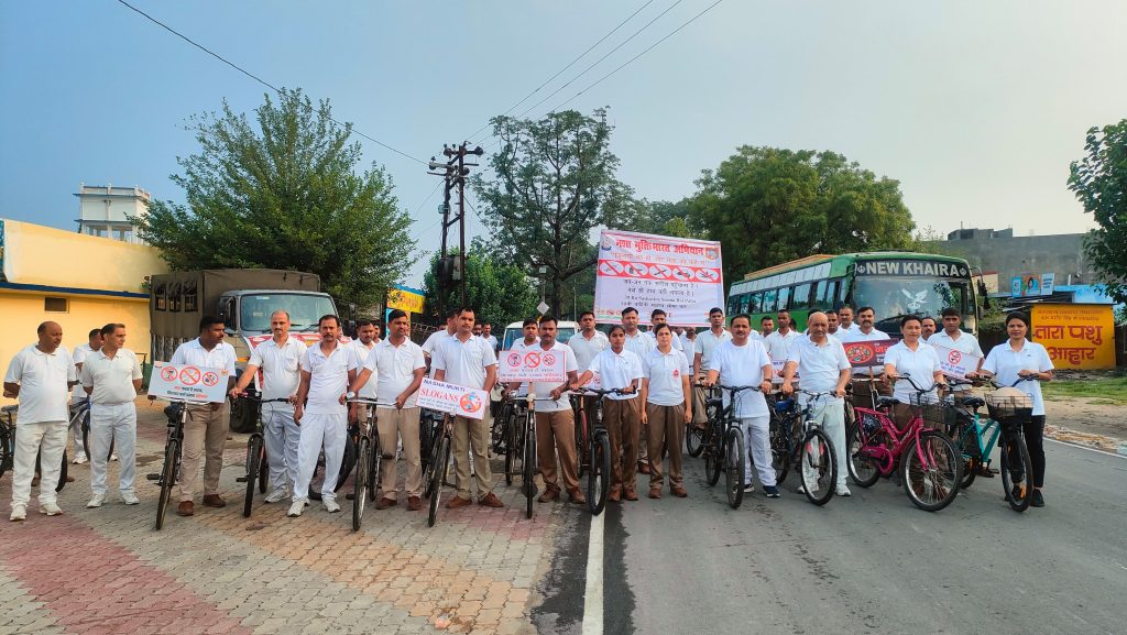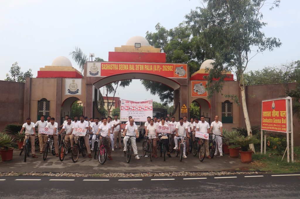*39वीं वाहिनी, सशस्त्र सीमा बल,पलिया कलां लखीमपुर खीरी में नशा मुक्त भारत पखवाड़ा के तहत साइकिल रैली का आयोजन* संजय सिंह विधानसभा मीडिया प्रभारी दिनांक 18.06.2025 को 39वीं वाहिनी सशस्त्र सीमा बल, पलिया द्वारा “नशा मुक्त भारत पखवाड़ा” के अंतर्गत जागरूकता साइकिल रैली का आयोजन किया गया । इस रैली का नेतृत्व कमांडेंट श्री रबीन्द्र कुमार राजेश्वरी के निर्देशन में किया गया । रैली का शुभारंभ वाहिनी मुख्यालय से होकर महँगापुर गुरुद्वारा तक किया गया । इस साइकिल रैली का मुख्य उद्देश्य आमजन और सुरक्षा बलों के कार्मिकों को नशे से होने वाले शारीरिक, मानसिक एवं आर्थिक दुष्परिणामों के प्रति जागरूक करना था ।कमांडेंट श्री रबीन्द्र कुमार राजेश्वरी ने इस अवसर पर सभी अधिकारियों, जवानों एवं आम नागरिकों को संबोधित करते हुए नशा मुक्त जीवन की आवश्यकता पर बल दिया । उन्होंने बताया कि नशा न केवल व्यक्ति की शारीरिक एवं मानसिक क्षमताओं को प्रभावित करता है, बल्कि सामाजिक और पारिवारिक ढांचे को भी क्षति पहुँचाता है ।इस रैली के दौरान वाहिनी के सभी कार्मिकों द्वारा जागरूकता स्लोगनों जैसे “नशा छोड़ो, जीवन को अपनाओ”,”स्वस्थ समाज की यही है पहचान, नशा मुक्त हो हिंदुस्तान”,”नशा मुक्त भारत, सुंदर भारत” आदि के माध्यम से लोगों को नशे से दूर रहने का संदेश दिया गया । यह रैली स्थानीय नागरिकों में काफी सराही गई और बड़ी संख्या में लोगों ने भाग लेकर इस मुहिम को समर्थन प्रदान किया ।