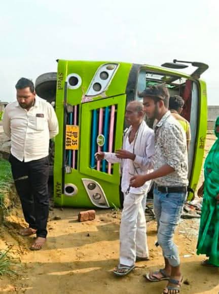 अनियंत्रित होकर पलटी निजी बस, दंपती सहित चार घायलहरदोई। बिलग्राम होकर उन्नाव के लिए जाने वाली प्राइवेट बस शुक्रवार शाम हरदोई से उन्नाव जा रही थी। हरदोई रोड पर स्थित गंगा एक्सप्रेस-वे के अंडरपास के निकट बस अनियंत्रित होकर पलट गई। घटना में बिलग्राम नगर के मोहल्ला रफैयतगंज निवासी महजबी (35) और उसकी पुत्री कुलसुम (7), गुरौली निवासी राम किशोर और उनकी पत्नी रामश्री, सुल्हाड़ा निवासी राधेश्याम (31) और हरदोई के चंदीपुरवा निवासी मंजू सिंह (45) घायल हो गईं। घटना की जानकारी पर तहसीलदार अमित कुमार, कोतवाल अरविंद रॉय मौके पर पहुंच गए। घायलों को सीएचसी में भर्ती कराया गया है। घटना के बाद चालक मौके से भाग गया।