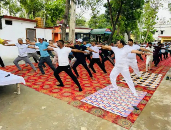 लखीमपुर खीरी उत्तर प्रदेश।मितौली कोतवाली में विश्व योग दिवस पर योग कार्यक्रमः पुलिस अधिकारियों ने किया योगाभ्यास, शारीरिक- मानसिक स्वास्थ्य पर दिया जोरमितौली खीरी। मितौली कोतवाली में विश्व योग दिवस के अवसर पर विशेष योग कार्यक्रम का आयोजन किया गया। पुलिस उपाधीक्षक मितौली के पर्यवेक्षण में यह कार्यक्रम संपन्न हुआ।प्रभारी निरीक्षक शिवाजी दुबे के नेतृत्व में सुबह 6ः30 बजे योग कार्यक्रम शुरू हुआ। इस 1 घंटे के सत्र में सभी पुरुष और महिला पुलिस कर्मी, उप निरीक्षक और अन्य अधिकारी शामिल हुए। कार्यक्रम में पुलिस कर्मियों ने विभिन्न योगासन और प्राणायाम किए। इस आयोजन का मुख्य उद्देश्य पुलिस बल को तनाव मुक्त वातावरण प्रदान करना था। साथ ही उनके शारीरिक और मानसिक स्वास्थ्य को मजबूत बनाना था।प्रभारी निरीक्षक शिवाजी दुबे ने कहा कि योग शरीर को स्वस्थ रखने के साथ मानसिक संतुलन भी प्रदान करता है। उन्होंने पुलिसकर्मियों को अपनी दैनिक दिनचर्या में योग को शामिल करने की सलाह दी। कार्यक्रम के अंत में सभी अधिकारियों ने नियमित योग करने का संकल्प लिया। सभी ने इस पहल की सराहना की।रिपोर्टर योगेश कुमार गौतमएम डी न्यूज़ब्लाक मितौली जिला लखीमपुर खीरी8756799044