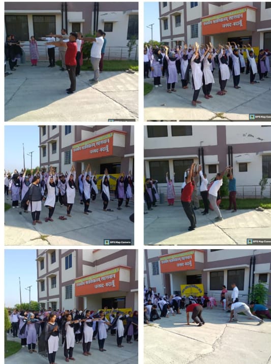 आज संगठन राजकीय महाविद्यालय सहसवान में 11वें अंतर्राष्ट्रीय योग दिवस पर योग महोत्सव कार्यक्रम हुआ। मुनेश कुमार पत्रकार सहसवान। (बदायूं) सहसवान:- संगठन राजकीय महाविद्यालय सहसवान में 11 वे अंतर्राष्ट्रीय योग दिवस पर राज्यपाल सचिवालय लखनऊ द्वारा निर्देशित विश्व कीर्तिमान स्थापित किए जाने हेतु सभी छात्र-छात्राओं ने एक साथ मिलकर सूर्य नमस्कार योग मुद्रा कार्यक्रम का आयोजन किया। कार्यक्रम संगठन राजकीय महाविद्यालय सहसवान के प्रांगण मैं प्राचार्य डॉ.गुरदीप सिंह उप्पल के सानिध्य में किया गया। कार्यक्रम के शुभ आरंभ में सभी विद्यार्थियों एवं शिक्षकों व समस्त स्टाफ ने योग दिवस पर शपथ ली कि हम लोग योग करेंगे और निरोगी रहेंगे। प्राचार्य डॉ.गुरदीप सिंह उप्पल ने कहा योग हमारे जीवन का महत्वपूर्ण अंग है योग के द्वारा हम अपनी काया को स्वस्थ रख सकते हैं। योग हमारे शरीर एक बार मानसिक व्यक्तित्व का विकास करता है। कॉलेज प्रांगण में शारीरिक शिक्षा असिस्टेंट प्रोफेसर डॉ राजेश सिंह के निर्देशन में छात्र-छात्राओं ने योग आसनों को किया। साथ ही सूर्य नमस्कार योग मित्र प्राणायाम व आसन मुद्रा आदि योग क्रियाएं की। शिक्षकों में (डॉ.सौरभ नगर) (डॉ.रजनी गुप्ता) (डॉ.नीति सक्सेना) (डॉ.नवीन) (डॉ.ब्रह्मस्वरूप) (डॉ.सुरजीत सिंह मौर्य) एवं शिक्षणेत्तर कर्मचारी कमल सिंह और आशीष ने योग मुद्रा एवं आसनों को किया। योग मुद्रा में लगभग 40 से 50 छात्र व छात्राओं ने उपस्थित होकर योग आसनों को किया। जिसमें .सूर्य नमस्कार.योग मुद्रा.प्राणायाम और .आसान मुद्रा.आदि मुख्य रही