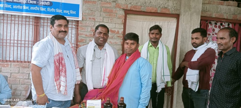 आज,22,, 6,,2025जिला भदोई ग्रामसभा मेदनीपुर में निः शुल्क स्वास्थ्य मेला कैंपका मुख्य अतिथि द्वारा फीता काट कर भव्य शुभारंभ किया गया मेला कैंप ग्राम सभा मेदनीपुर जिला भदोई में निःशुल्क स्वास्थ्य मेला कैंप का मुख्य अतिथि प्रमुख समाज सेवी एवं लेखक डा० जे एस० बिन्द ने फीता काटकर शुभारंभ किया मुख्य अतिथि ने आभार व्यक्त करते हुए बताया सभी गांव में इस तरह के कैंप का आयोजन किया जाय ऐसे कार्य की बहुत ही ज्यादा ज़रूरत है मेला कैंप में ग्राम वासी स्वास्थ्य मेला कैंप में आकर जांच कर बुखार ,,खांसी, महिलाओं से जुड़ी समस्या जैसे दवाई फ्री का लाभ बच्चे,,बुजुर्ग,, महिलाओं ने उठाया इस अवसर पर मेला कैंप के संयोजक डाo रतन बिंद मुख्य अतिथि को अंगवस्त्र पहना कर स्वागत एवं अभिनंदन किया इस अवसर पर ग्राम प्रधान राय साहब बिंद का भी स्वागत किया ग्राम प्रधान ने इस तरह के कार्य की सहराना कर सभी को लाभ उठाना चाहिए संयोजक डाo रतन बिंद का आभार व्यक्त किया कैंप शुभारंभ में उपस्थित प्रदीप बिन्द ,,आलोक बिन्द विजय बिन्द ,,नन्दू बिन्द ,,डा० सन्दीप बिन्द डा० सुनीलकुमार एवं बड़ी संख्या में ग्रामवासी उपस्थित रहे।वाराणसी से रिपोर्ट सलीम जावेद