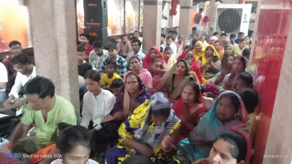 योगिनी एकादशी के उपलक्ष्य पर श्री श्याम संकीर्तन मे खाटू श्याम के भजनों से गुंजायमान रहा।बहुआयामी समाचार/मोहम्मद अशफाक गोला गोकर्ण नाथ खीरी। के अंतर्गत गोला नगर के समीप कंजा देव स्थान योगिनी एकादशी के उपलक्ष्य पर कंजा देव स्थान खाटू श्याम मंदिर के प्रांगण में संकीर्तन का किया गया आयोजन। मंदिर प्रांगण श्रद्धालुओं से भरा हुआ था खाटू नरेश के जयकारों से मंदिर प्रांगण गूंजायन हो गया। रात्रि 8 बजे से बाबा का संकीर्तन शुरू किया गया। मधुर आवाज से बाबा की महिमा का गुणगान किया गया। बाबा श्याम को सुंदर सुंदर भजनों से रिझाया और भक्तों के अपने भजनों पर थिरकने पर मजबूर कर दिया ! सुंदर भजनों में , कीर्तन कराओं ऐसा इतिहास बना दूंगा’, ‘ओ सांवरे मुझे तेरी जरूरत है,मेरे शीश के दानी का सारे जग में डंका बाजे, भजन गाया तो श्याम की भक्ति में सराबोर होकर झूम उठी। संकीर्तन में श्याम भक्तों से मंदिर प्रांगण पुरुष महिलाओं बच्चों से काफी श्रद्धालु संकीर्तन में हुए सम्मिलित। श्री खाटू श्याम बाबा के मंदिर प्रांगण में दिन पर दिन भक्तों की भीड़ बढ़ती ही जा रही है मंदिर प्रांगण में श्रद्धालुओं से पूरा भरा हुआ था। योगिनी’ एकादशी का व्रत ऐसा पुण्यशाली है कि अठ्ठासी हजार ब्राह्मणों को भोजन कराने से जो फल मिलता है,वही फल‘योगिनी एकादशी’ का व्रत करने वाले मनुष्य को मिलता है ।‘योगिनी’महान पापों को शान्त करनेवाली और महान पुण्य फल देनेवाली है।इस माहात्म्य को पढ़ने और सुनने से मनुष्य सब पापों से मुक्त हो जाता है । संकीर्तन का समापन श्री खाटू श्याम बाबा की आरती करके मंदिर में पुजारी जी ने भक्तों को श्याम बाबा का दिया आशीर्वाद तत्पश्चात श्रद्धालुओं ने पंक्ति में रखें प्रसाद किया ग्रहण। इस अवसर पर अनिल जलोटा,दीपक राजपूत,अजय गुप्ता,सुधीर गुप्ता,मोहित गुप्ता,शिवम गुप्ता, संदीप राजपूत,अभिषेक राजपूत,आयुष गुप्ता,प्रमोद सोनी,मयंक महेश्वरी, नवनीत श्रीवास्तव,रमेश वर्मा, अनुराग गुप्ता,सुमित राठौर,मुकेश राठौर, प्रवीण रस्तोगी सहित समिति के आदि सेवादार उपस्थित रहे।