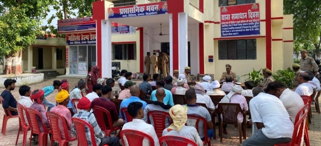 चिल्हियां/सिद्धार्थनगर। पुलिस अधीक्षक सिद्धार्थनगर डॉ0 अभिषेक महाजन पुलिस अधीक्षक सिद्धार्थनगर के आदेश के क्रम में एवं अपर पुलिस अधीक्षक सिद्धार्थनगर प्रशान्त कुमार प्रसाद के कुशल पर्यवेक्षण में व क्षेत्राधिकारी शोहरतगढ़़ सुजीत कुमार राय के निर्देशन में एवं थानाध्यक्ष चिल्हियां रामदेव द्वारा रविवार को थाना स्थानीय पर आगामी त्यौहार मोहर्रम त्यौहार को सकुशल सम्पन्न कराये जाने हेतु थाना क्षेत्र के ग्राम प्रधान, सम्भ्रान्त व्यक्तियो, धर्मगुरुओं/सदस्यों के साथ पीस कमेटी की मीटिंग की गई। सभी को शान्तिपूर्ण, सौहार्दपूर्वक, त्यौहार को मनाये जाने की अपील की गयी। बैठक में मौजूद सभी व्यक्तियों से त्यौहार के दृष्टिगत शासन/उच्चाधिकारीगण द्वारा प्राप्त गाइडलाइन से अवगत कराया गया।