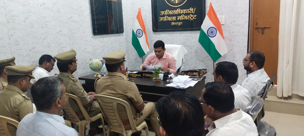 सैदपुर (गाजीपुर) : विभिन्न विभागों के अधिकारियों के साथ ज्वाइंट मजिस्ट्रेट रामेश्वर सुधाकर सब्बनवाड ने बुधवार को अपने कार्यालय में बैठक की और आवश्यक दिशा निर्देश दिए।