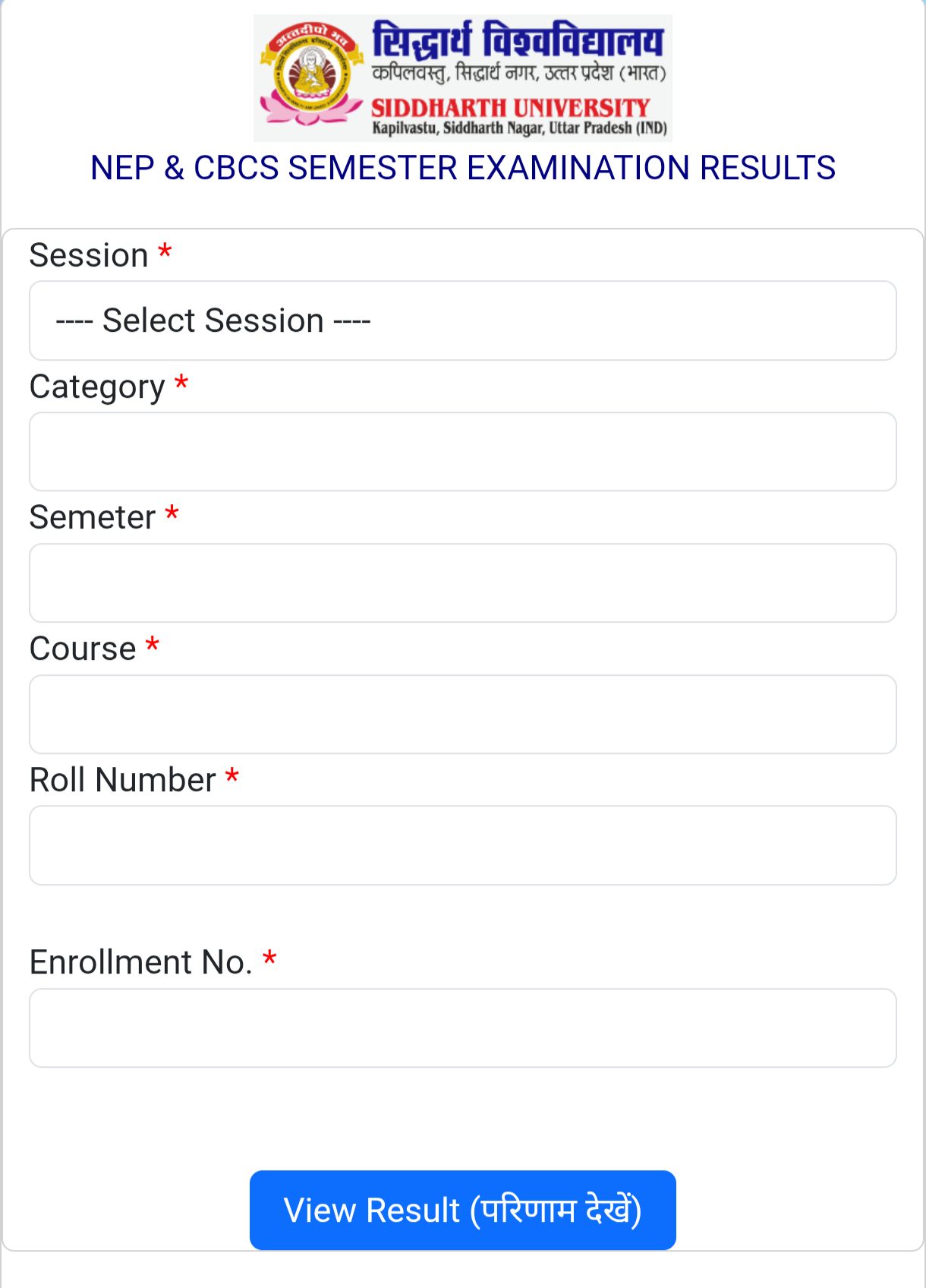 सिद्धार्थविश्वविद्यालय कपिलवस्तु सिद्धार्थनगर ने सम सेमेस्टर परीक्षा 2024-25 के बीए,बीएससी,बीकॉम,एमए आदि कोर्सों के द्वितीय, चतुर्थ एवं षष्टम सेमेस्टर परीक्षा का परिणाम घोषित कर दिया।छात्र अपना परीक्षा परिणाम डायरेक्ट दिए गए लिंक से डाऊनलोड कर सकते है।