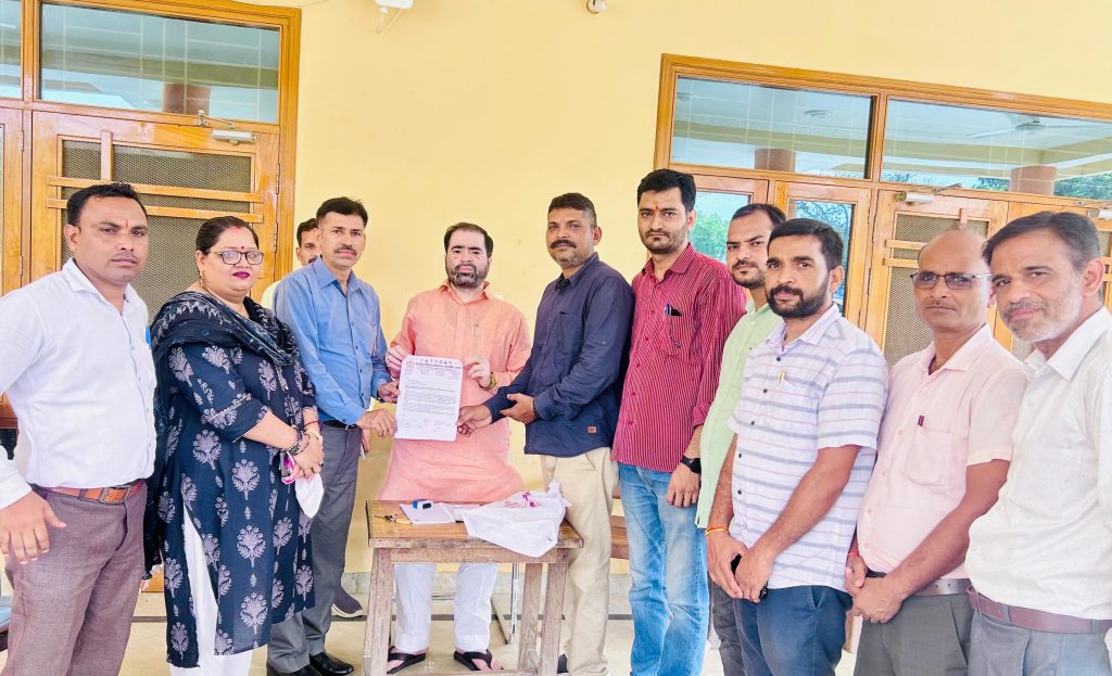 विद्यालय युग्मन के विरोध में यूटा का ज्ञापन ।बाराबंकी: यूनाइटेड टीचर्स एसोसिएशन यूटा जनपद बाराबंकी के जिलाध्यक्ष आशुतोष कुमार के निर्देशन में पचास से कम नामांकित छात्रों वाले परिषदीय विद्यालयों को युग्मन/पेयरिंग करने की प्रस्तावित नीति के विरोध व पुनर्विचार किये जाने के सम्बन्ध में माननीय मुख्यमंत्री जी को संबोधित ज्ञापन माननीय मंत्री सतीश शर्मा व विधायक हैदरगढ़ दिनेश रावत के माध्यम से प्रेषित किया गया। ज्ञात हो कि पूर्व प्रधानमंत्री स्वर्गीय अटल बिहारी वाजपेई जी के नेतृत्व में केंद्र सरकार ने देश में सर्व शिक्षा अभियान प्रारंभ किया था। तत्कालीन सरकार की सोच थी कि 6 वर्ष से 14 वर्ष तक आयु के बच्चों को सुलभ व आवश्यक प्राथमिक शिक्षा उपलब्ध कराई जाए, इसी कारण प्रत्येक ग्राम-मजरे में प्राथमिक विद्यालय की स्थापना की गई थी। इतना ही नही इस अभियान के तहत प्राथमिक शिक्षा को अनिवार्य व निशुल्क कर दिया गया था। सर्व शिक्षा अभियान के प्रावधान को मौलिक अधिकार बनाया गया था। वर्तमान में काम छात्र संख्या नामांकन के आधार पर परिषदीय विद्यालयों का युग्मन कर बंद करने के निर्णय के सम्बन्ध में ज्ञापन दिया गया। शिक्षकों के इस ज्ञापन में पेयरिंग/युग्मन नीति को छात्र एवं शिक्षक विरोधी बताते हुए शिक्षक संगठन यूटा ने अपना विरोध दर्ज कराया। शिक्षकों का यह मानना है कि ग्रामीण क्षेत्र के छात्रों के भविष्य के साथ पेयरिंग/युग्मन नीति घोर अन्यायपूर्ण है। विद्यालयों की जबरन विलय की प्रक्रिया से न केवल शिक्षण के संस्थानों में कमी आयेगी बल्कि स्वतः ही शिक्षकों के पदों में कटौती भी सुनिश्चित हो जायेगी, जो शिक्षा शिक्षक एवं विद्यालय के लिए अत्यंत दुर्भाग्यपूर्ण है। इस अवसर ओर जिला संयुक्त मंत्री सकिब क़िदवाई, जिला संगठन मंत्री दीपक मिश्रा, जिला महिला उपाध्यक्ष श्रीती बैसवार, ब्लॉक अध्यक्ष सिद्धौर देवेन्द्र निरंजन, ब्लॉक अध्यक्ष हैदरगढ़ अभय सिंह, संग्राम वर्मा, देवेन्द्र कुमार, पवन किशोर, रामू, अमित कुमार, संदीप गौतम, आशीष वर्मा, चन्द्र विजय सिंह, शैलेन्द्र रावत, राजेश श्रीवास्तव, संजय सिंह, आलोक श्रीवास्तव, ब्रजेन्द्र मिश्रा, मोहित सिंह, सत्यधर द्विवेदी आदि शिक्षक उपस्थित रहे। रिपोर्ट तेज बहादुर शर्मा जिला संवाददाता बाराबंकी।