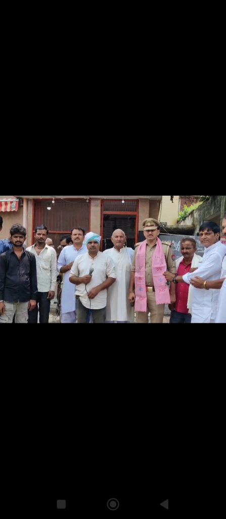 राष्ट्रीय ध्वज तिरंगा सामाजिक एकता का प्रतीकः प्रमुख समाजसेवी मनीष चौधरीगांधीनगर पुलिस चौकी पर हुआ मासिक सामूहिक राष्ट्रीय गान, मेहनतकश मोची और चौकी इंचार्ज सम्मानितमुजफ्फरनगर। राष्ट्रीय सामाजिक संस्था के अध्यक्ष प्रमुख समाजसेवी मनीष चौधरी ने अपनी टीम के साथ मंगलवार को मासिक सामूहिक राष्ट्रीय गान का आयोजन कर लोगों को सबसे पहले देश, का संदेश देने का काम किया। उन्होंने लोगों को परिश्रम के सहारे सफलता के लिए प्रेरित करते हुए मेहनत मजदूरी करने वाले दिव्यांग मोची के साथ ही समाजहित में सराहनीय कार्य करने वाले चौकी इंचार्ज को भी सम्मानित किया। इस दौरान उन्होंने कहा कि राष्ट्रीय ध्वज हम सभी को अनेकता में एकता की प्रेरणा देता है। यही कारण है कि हम तिरंगे के नीचे हर माह सभी लोगों को आमंत्रित कर समाज को जोड़ने का काम कर रहे हैं।प्रमुख समाजसेवी मनीष चौधरी ने मीडिया कर्मियों से बातचीत में कहा कि हमारी सामाजिक संस्था द्वारा मानवता, राष्ट्रीय एकता और देश के सैनिकों तथा महापुरुषों के बलिदान को समर्पित मासिक सामूहिक राष्ट्रीय गान कार्यक्रम कर रही है। आज यह कार्यक्रम भोपा रोड गांधीनगर पुलिस चौकी के पास हनुमान मंदिर पर किया गया। यहां पर सभी लोगों ने एकत्र होकर राष्ट्रवाद की भावना के साथ अपनी प्रतिभागिता करते हुए मानवता और एकता का संदेश दिया।उन्होंने बताया कि आज का यह कार्यक्रम हमने मानवता को समर्पित किया है। इसी के चलते हनुमान मंदिर के पास करीब 25 बरस से मोची का कार्य करने वाले दिव्यांग सुन्दर लाल जाटव और गांधीनगर पुलिस चौकी इंचार्ज एसआई राहुल चौधरी को पटका पहनाकर सम्मानित किया गया। उन्होंने समाज को संदेश देते हुए कहा कि धर्म और जाति से पहले देश है और यही प्रचार हम इस कार्यक्रम के माध्यम से कर रहे हैं। इसमें हमें लगातार सभी वर्गों के लोगों का सहयोग भी प्राप्त हो रहा है। यहां पर सहरावत खाप के प्रदेश संयोजक वीर मास्टरजी ने कहा कि शहीदों के प्रति सम्मान प्रकट करने के लिए यह कार्यक्रम सराहनीय है। ऐसे कार्यक्रम सामाजिक एकता के लिए भी महत्वपूर्ण हैं। इस दौरान मुख्य रूप से सहरावत खाप के चौधरी संजीव सहरावत, भारतवीर प्रधान, भारत लोक सेवक पार्टी के प्रदेश अध्यक्ष केपी चौधरी, प्रदेश संयोजक वीर मास्टर जी, चन्द्रवीर सहरावत, जयदेव पंवार, बॉबी सहरावत, अश्वनी सहरावत, सतपाल सहित अन्य सैंकड़ों लोग मौजूद रहे।