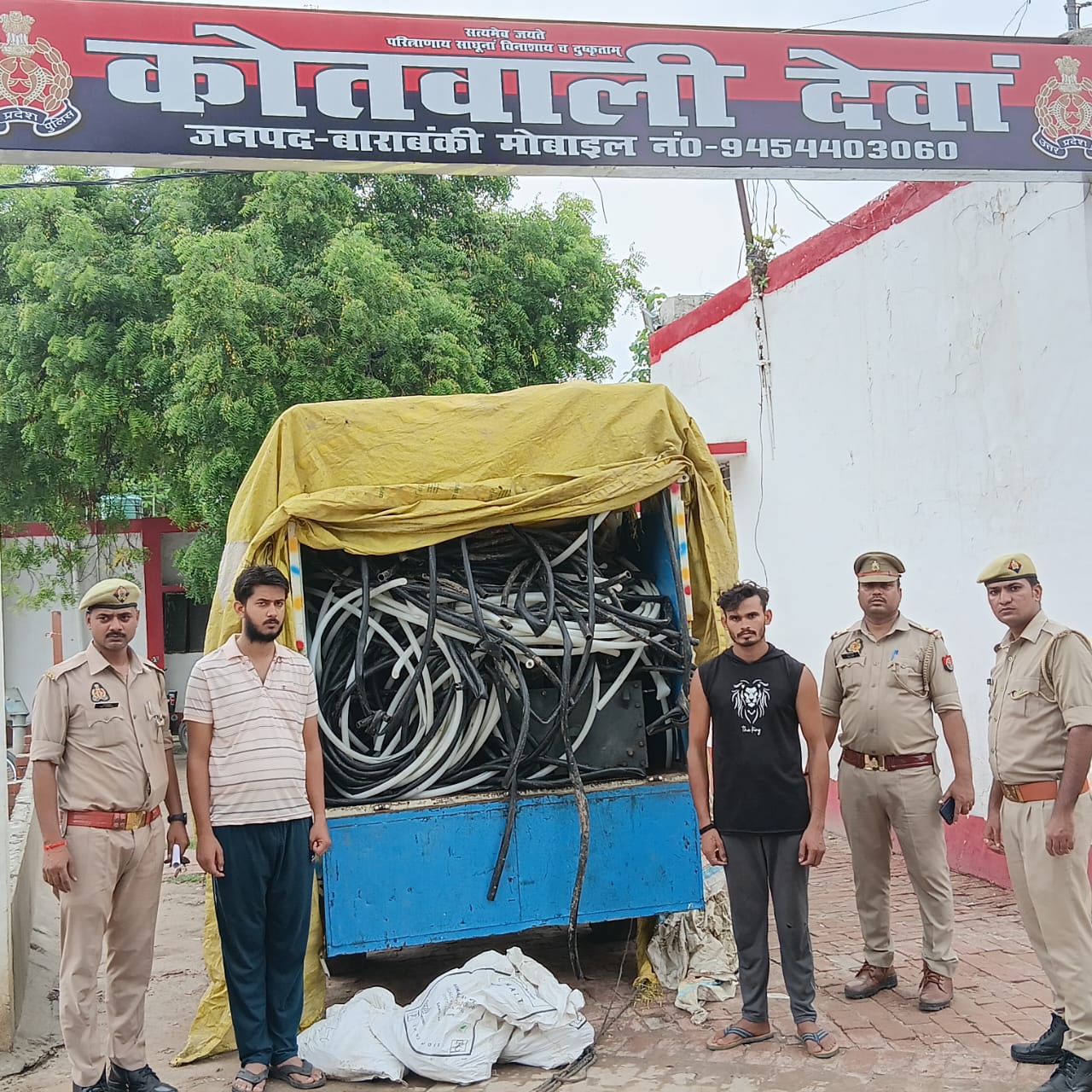 बाराबंकी:- पुलिस अधीक्षक अर्पित विजयवर्गीय द्वारा जनपद में अपराध एवं अपराधियों पर अंकुश लगाने तथा जनपद में हुई चोरी एवं लूट की घटनाओं का शीघ्र अनावरण करने समस्त थाना प्रभारियों को निर्देशित किया गया। इसी क्रम में मंगलवार को थाना देवा पुलिस टीम द्वारा चेकिंग के दौरान 02 अभियुक्तों शिवकमल पुत्र रामलखन निवासी ग्राम अड़ौरा थाना देवा जनपद, कृष्ण गोपाल पुत्र अरुण कुमार निवासी ग्राम पकडी शुक्ल थाना इटवा जनपद सिद्धार्थनगर को कुर्सी रोड नहर पुल कस्बा देवा से गिरफ्तार किया गया।अभियुक्तगण के कब्जे से 01 पिकप वाहन, 4 ट्रान्सफार्मर, 03 कुन्तल 10 किलोग्राम तांबे का तार व प्लास्टिक की कटी हुई केबिल बरामद किया।