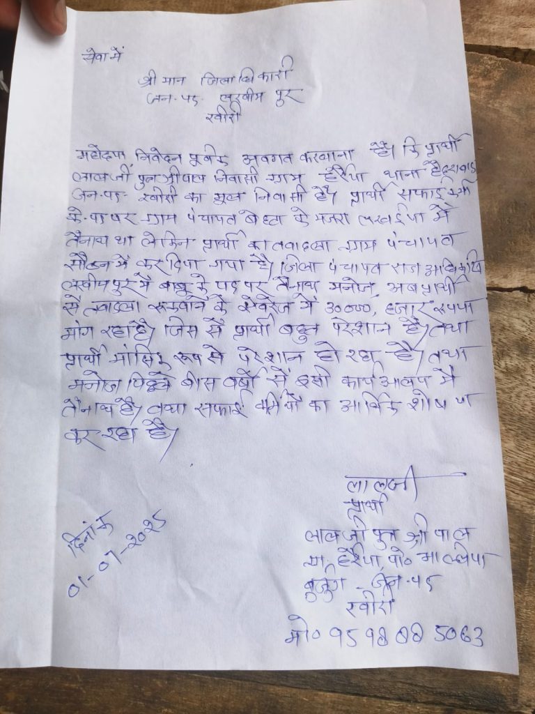 रजागंज खीरीजिला पंचायत अधिकारी के कार्यालय में बाबू बनां लुटेरा कर रहा सफाई कर्मचारियों का दोहन ट्रांसंफर नियूक्ती में कमां रहा लाखों *बाबा की सरकार में भय नही वसूली चालू सफाई कर्मचारी नें मनोज नाम के बाबू पर ट्रासंफर रोकने के एवरेज में मांगें तीस 30000/हजार पिछले बीस सालों पैठ बनां रखी है सफाई कर्मचारियों पर लखीमपुर खीरी के चश्मा विधायक दे रहा संरक्षण सफाई कर्मी लाल जी घूस खोरी से आहत है हम यह कह रहे है बाबू सर्वोच है आधिकारी अगर अधिकारी सुस्सत है तो वह पैशा ले रहा है