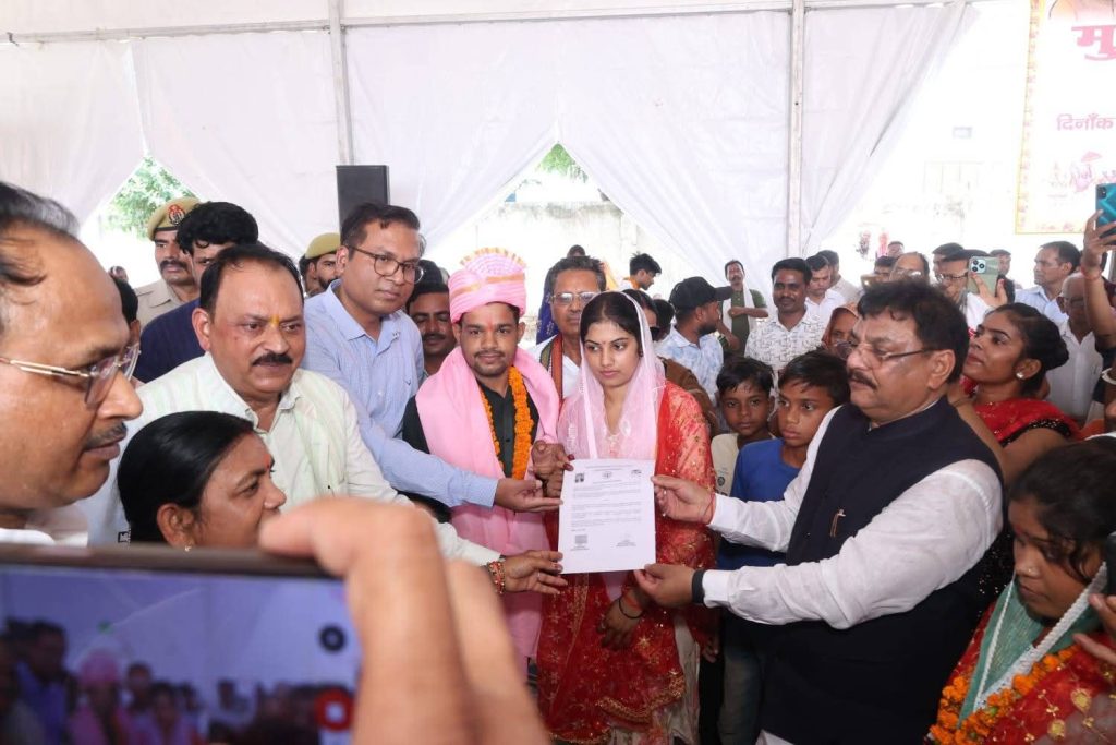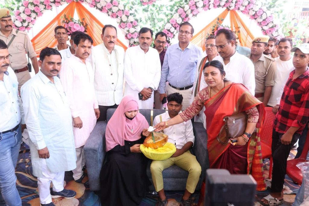 आज तिलहर विधानसभा में मुख्यमंत्री सामूहिक विवाह योजना के अंतर्गत भव्य आयोजन में 97 जोड़ों का विवाह संपन्न हुआ, जिसमें सामाजिक समरसता और सांप्रदायिक सौहार्द्र का अनुपम उदाहरण देखने को मिला। इस कार्यक्रम में 83 जोड़ों ने हिंदू रीति-रिवाजों से सात फेरे लिए, जबकि 14 मुस्लिम जोड़ों का निकाह परंपरागत विधि से सम्पन्न हुआ।मुख्य अतिथि माननीय विधायक श्रीमती सलोना कुशवाह जी, राज्यसभा सांसद श्री मिथिलेश कुमार कठेरिया जी, एमएलसी श्री सुधीर गुप्ता जी, भाजपा जिलाध्यक्ष श्री केसी मिश्रा जी, पूर्व जिलाध्यक्ष श्री श्याम नारायण मिश्रा जी, क्षेत्र पंचायत अध्यक्ष श्री भानुप्रताप सिंह जी तथा मैं स्वयं कार्यक्रम स्थल पर उपस्थित रहकर नवविवाहित जोड़ों को आशीर्वाद देने का सौभाग्य प्राप्त किया।यह योजना न केवल आर्थिक रूप से कमजोर परिवारों के लिए एक सहारा है, बल्कि सामाजिक एकता और महिला सशक्तिकरण की दिशा में राज्य सरकार की एक सशक्त पहल भी है। आयोजन स्थल को आकर्षक रूप से सजाया गया था और सभी जोड़ों को शासन द्वारा निर्धारित आर्थिक सहायता, उपहार सामग्री व प्रमाण-पत्र प्रदान किए गए।मैं नवविवाहित सभी जोड़ों के सुखद और समृद्ध भविष्य की कामना करता हूँ। यह योजना समाज में सकारात्मक परिवर्तन लाने की दिशा में एक प्रेरणास्रोत बन रही है।reporter Maharaj Singh Shahjahanpur