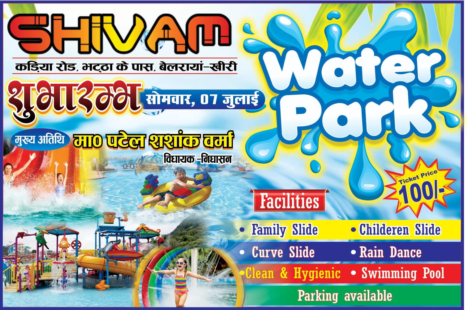 जनपद लखीमपुर निघासन तहसील के पर्यटकों को आकर्षित करने के लिए ध्रुव वर्मा जी के द्वारा शिवम वाटर पार्क के रूप में सौगात देने का काम किया गया है। जिसका उद्घाटन 7 जुलाई दिन सोमवार को क्षेत्रीय विधायक पटेल शशांक वर्मा द्वारा किया जाएगा। शिवम वाटर पार्क एक बहुत ही बेहतरीन वाटर पार्क है।