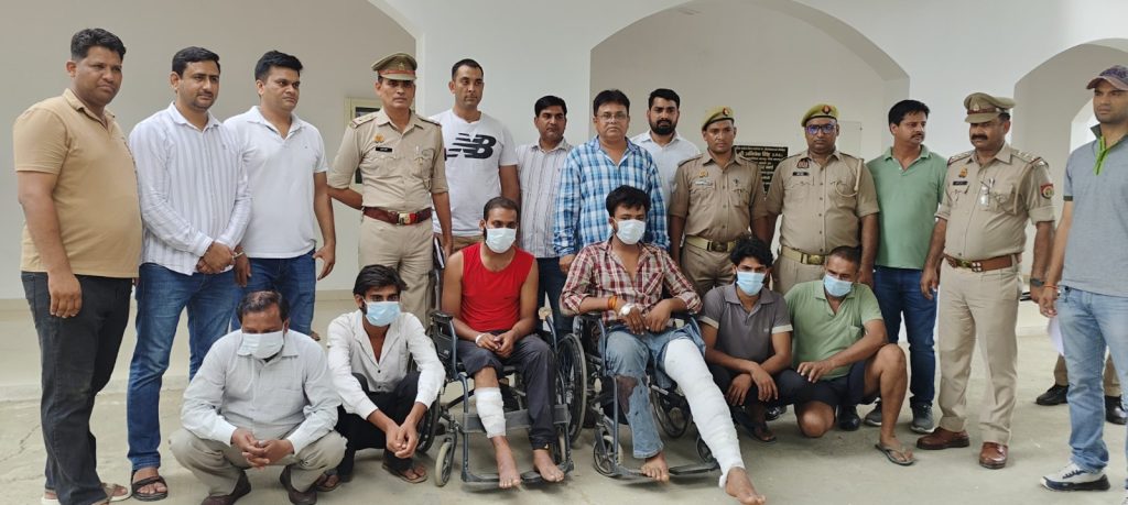 मुजफ्फरनगर। वरिष्ठ पुलिस अधीक्षक जनपद मुजफ्फरनगर संजय कुमार वर्मा के एवं थाना प्रभारी मन्सूरपुर व एसओजी प्रभारी के कुशल नेतृत्व में आज रात्री मे थानाक्षेत्र मन्सूरपुर के अन्तर्गत ग्राम निजामपुर में दुकान के बाहर से पूर्व ग्राम प्रधान कुलदीप पुत्र अर्जुन सिंह का अज्ञात बदमाशो ने अवैध शस्त्रो से डरा धमका कर मारुति आल्टो कार से अपहरण की घटना को अंजाम दिया था। प्राप्त तहरीर के आधार पर थाना मंसूरपुर पुलिस ने मुकदमा पंजीकृत किया गया। वह उच्चाधिकारी द्वारा अपर्हत की सकुशल बरामदगी तथा अभियुक्तों की गिरफ्तारी के लिए एसओजी व थाना मन्सूरपुर पुलिस की संयुक्त टीम का गठन किया गया। आज रात्रि को पुलिस टीम को मुखबिर द्वारा सूचना दी गयी कि घटना को कारित करने वाले अभियुक्त अपनी आल्टो गाडी से मेरठ की तरफ से आ रहे हैं। सूचना पर पुलिस टीम ने नावला कट के पास जिग-जैग बैरियर लगाकर मेरठ से आने वाले वाहनों की चैकिंग व तलाशी लेनी प्रारम्भ कर दी।कुछ समय पश्चात मेरठ की तरफ से एक ग्रे रंग की आल्टो कार आती हुई। दिखाई दी जिसे चैकिंग के लिए। टार्च की रोशनी देकर रूकने का इशारा किया गया। पुलिस टीम को देखकर आल्टो कार चालक ने कार को नावला की तरफ जाने वाले रास्ते मोड दिया। व तेजी से भागने लगे। पुलिस टीम ने कार सवारों का बदमाश होने का शक होने पर पीछा किया। नावला की तरफ से आती हुई चीता मोबाईल को देखकर कार नावला कट से 500 मीटर आगे कच्चे रास्ते की तरफ मुड गयी। रास्ता कच्चा होने के कारण गाडी फंस गयी। गाडी फंस जाने के कारण बदमाश कार को वहीं छोडकर पुलिस टीम पर जान से मारने की नीयत से फायरिंग करते हुए। ईख के खेतों में भागने लगे। बदमाशों द्वारा की गई फायरिंग में पुलिस टीम बाल-बाल बची पुलिस टीम ने बदमाशों को फायरिंग बंद कर आत्मसमर्पण करने की चेतावनी दी परंतु बदमाशों पर चेतावनी का कोई असर नहीं हुआ। तो पुलिस टीम ने भी फायरिंग करनी शुरू कर दी जिससे दो बदमाश के पैरों में गोली लग गई। दोनों बदमाश घायल हो गई। घायल बदमाशों को पुलिस टीम ने गिरफ्तार कर लिया। और अन्य दो साथी बदमाशों को कांबिग के दौरान गिरफ्तार कर लिया गया। पूछताछ करने पर बदमाशों ने दो साजिश कर्ताओं के नाम बताएं। और ऑटो कर में पिछली सीट पर बंधक बने पूर्व प्रधान कुलदीप को भी से कुशल बरामद कर लिया गया। पुलिस द्वारा पूछताछ करने पर बदमाशों ने अपने नाम जॉनी पुत्र ओमपाल निवासी ग्राम नांगली आजमाबाद थाना इंचोली जनपद मेरठ बताया वह आदित्य उर्फ लाला पुत्र विपिन निवासी ग्राम कुनकुरा थाना इंचली जनपद मेरठ बताया वह मिलन पुत्र सुशील निवासी ग्राम कुंनकुरा थाना इंचोली जनपद मेरठ बताया। वह हर्ष मेहरा पुत्र मिंटू मेहरा निवासी मोहल्ला कुआं पट्टी थाना इंचोली जनपद मेरठ बताएं। बदमा