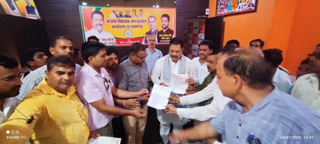 इसी क्रम में आज दिनाँक 04 जुलाई 2025 को जनपद बदायूँ में आदरणीय जिलाध्यक्ष श्री संजीव शर्मा जी के मार्गदर्शन में, आदरणीय जिला मंत्री श्री उदयवीर सिंह जी के कुशल नेतृत्व में, आदरणीय तहसील प्रभारी श्री अनुराग यादव जी के कुशल संचालन में एवं विकास क्षेत्र दातागंज, म्याऊं एवं समरेर के ब्लॉक पदाधिकारीगण के कुशल प्रबंधन में तीनों विकास क्षेत्रों से उपस्थित हुए सम्मानित शिक्षक साथीगण, ग्राम प्रधानगण, भोजन माताएं एवं अभिभावकगण आदि के भारी जनसमूह के साथ विधायक राजीव कुमार सिंह उर्फ बब्बू भईया के कार्यालय पर पहुँचकर शासन द्वारा विद्यालय युग्मन एवं समायोजन हेतु जारी प्रक्रिया के समस्त वर्तमान एवं भावी दूरगामी नकारात्मक प्रभावों से अवगत कराते हुए उपर्युक्त विषयक ज्ञापन सौंपा गया।
