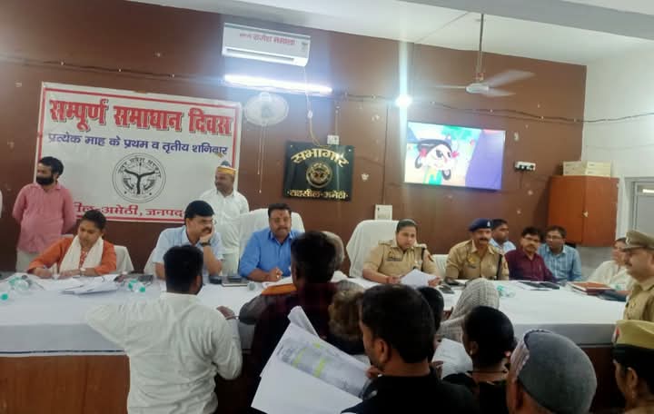 अमेठी । सम्पूर्ण समाधान दिवस के अंतर्गत मंगलवार को जिलाधिकारी संजय चौहान अमेठी और पुलिस अधीक्षक महोदया अर्पणा रजत कौशिक,ने तहसील सदर परिसर में जनसुनवाई कर आमजन की समस्याएं सुनीं। जनसुनवाई के दौरान बड़ी संख्या में फरियादी अपनी शिकायतों और समस्याओं के निवारण हेतु पहुंचे।