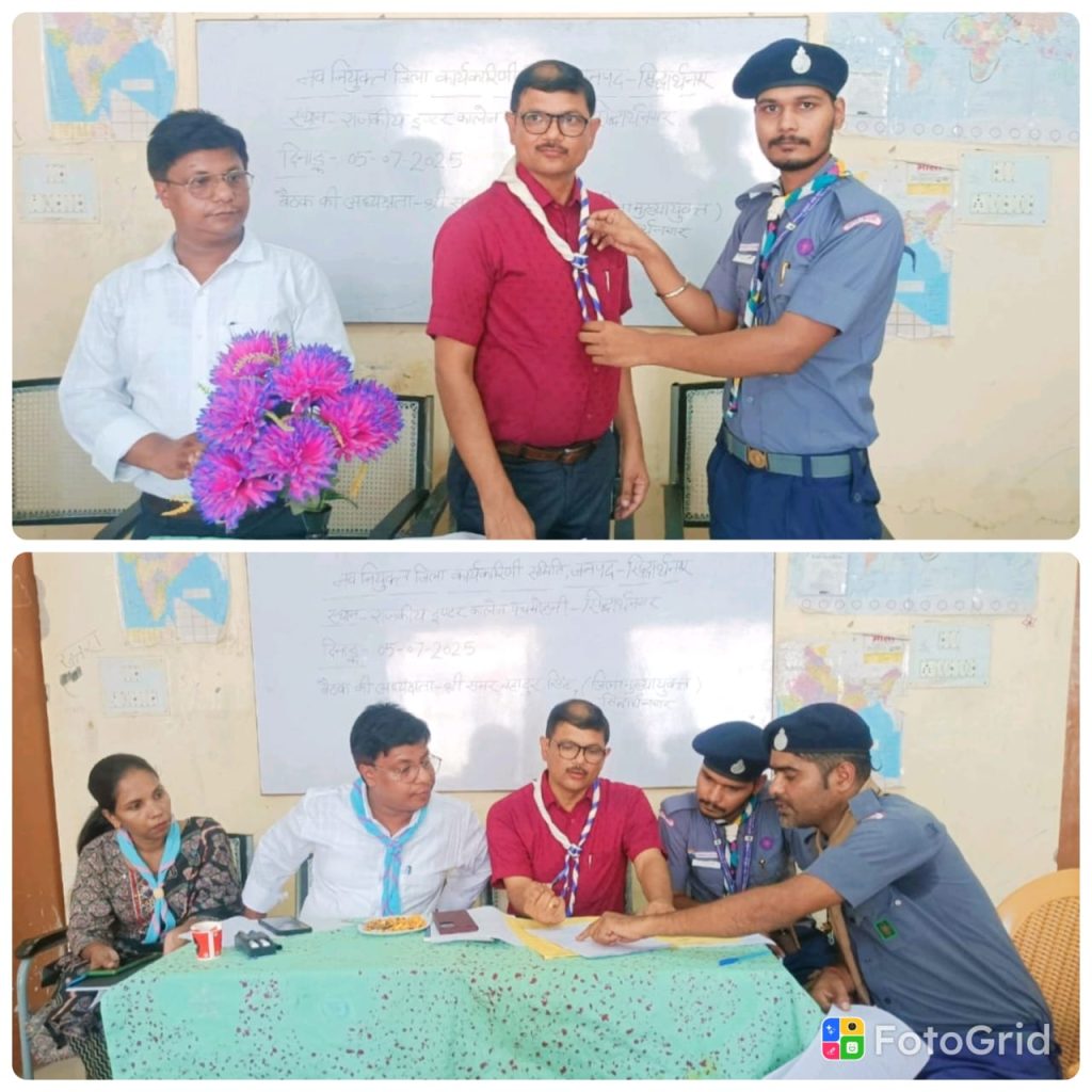 खेसरहा/सिद्धार्थनगर। भारत स्काउट और गाइड उत्तर प्रदेश के अन्तर्गत जनपद सिद्धार्थनगर में नवनियुक्त जिला कार्यकारिणी समिति का बैठक शनिवार को राजकीय इन्टर कालेज पचमोहनी में सम्पन्न हुआ। जिला मुख्यायुक्त समर बहादुर सिंह ने कहा कि प्रादेशिक मुख्यालय के आदेश के क्रम में जनपद सिद्धार्थनगर में स्काउटिंग गाइडिंग के समस्त गतिविधियों का स्काउटिंग गाइडिंग के प्रतिज्ञा और नियम के उद्देश्यों पर कार्य किया जायेगा। जिला स्काउट कमिश्नर करूणाकान्त ने कहा कि सिद्धार्थनगर में स्काउटिंग गाइडिंग को शुन्य से शिखर तक पहुंचाने हेतु हम सब पुरा प्रयास करेंगे। जिला गाइड कमिश्नर सिद्धार्थनगर सुश्री अर्चना सिंह ने कहा कि हम सभी तन मन धन से सिद्धार्थनगर के स्काउटिंग गाइडिंग के लिए