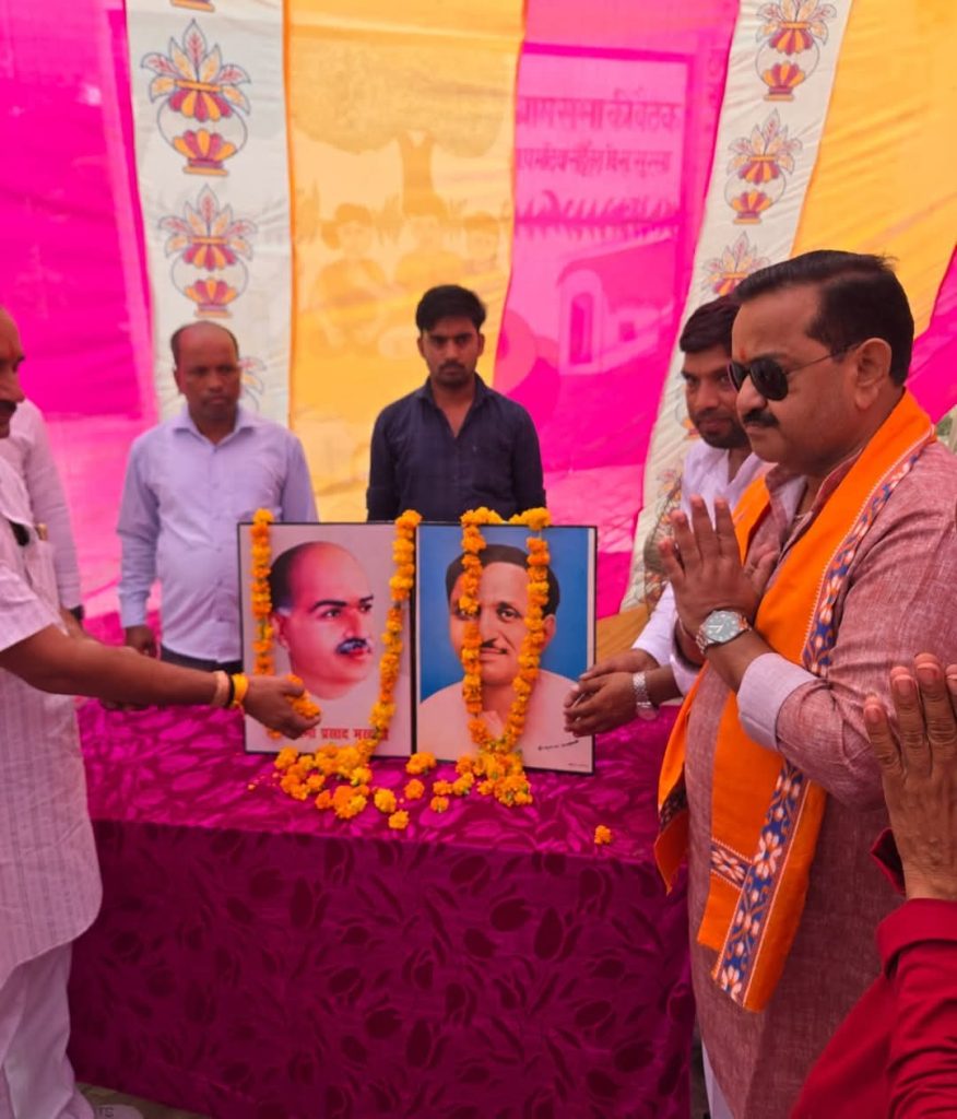 बघौली हरदोई मंडल मम्भना खेड़ा में जनसंघ संस्थापक श्याम प्रसाद मुखर्जी की 125 में जयंती पर मुख्य अतिथि सांडी विधायक प्रभास कुमार का स्वागत किया गया।