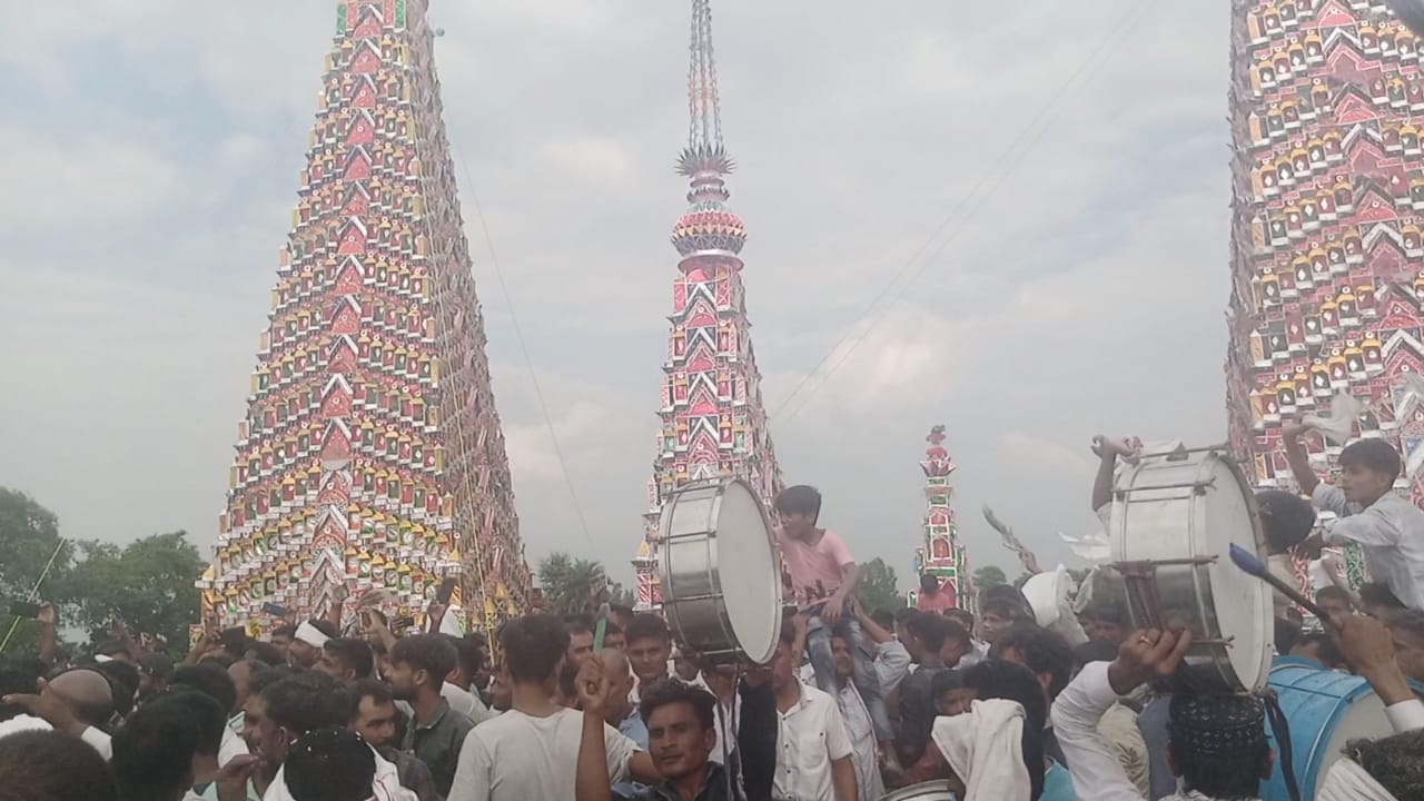 तहसील मितौली के ग्राम लालपुर व तहसील गोला गोकर्णनाथ के ग्राम मोहम्मदाबाद जिला लखीमपुर खीरी, 6 जुलाई 2025:* गोला गोकर्णनाथ तहसील के ग्राम सभा मोहम्मद में मोहर्रम की दसवीं तारीख को ताजियों को करबला में सुपुर्द-ए-खाक किया गया। नगर में विभिन्न क्षेत्रों से निकाले गए जुलूस में हजरत इमाम हुसैन की शहादत की याद में मातम करते चल रहे थे। ‘अली का दामन नहीं छोड़ेंगे, हुसैन का दामन नहीं छोड़ेंगे’ नारे लगाए जा रहे थे। विभिन्न क्षेत्रों से ताजियेदारों, अलमदारों के आने का क्रम शुरू हुआ। इसमें हजरत इमाम हुसैन की शहादत को याद किया।