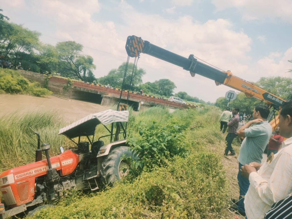 रात 9 बजे नसीबगंज चौराहा के आगे कोहरा पुल के बगल नहर में स्वराज 855 FE लाल कलर का ट्रैक्टर नहर में गिर गया है जो कि रोटावेटर लगा हुआ है ड्राइवर ही ट्रैक्टर का मालिक है उसका नाम छोटू चौधरी है ग्राम भैंसहिया थाना शिव नगर डिडई का निवासी है ड्राइवर का मौके पर ही मौत हो गई है उसको पोस्टमार्टम के लिए बस्ती भेजा गया है और आज दोपहर 11 बजे हाइड्रा केरन बुलाकर ट्रैक्टर को नहर से निकलवाया गया है