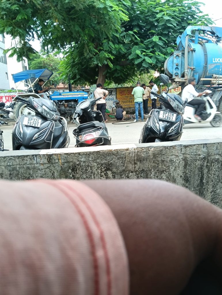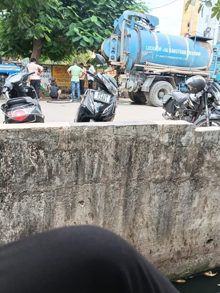 एम डी न्यूज़ चैनल रिपोर्टर प्रमोद कुमार लखनऊ से थाना विभूति खंड क्षेत्र लखनऊ से निकट रेलवे स्टेशन गोमती नगर के पास नाला के बगल बच्चन मेडिकल सेंटर के पास जो सीवर था वह पानी की वजह से बंद हो गया था आज लखनऊ जल संस्थान लखनऊ की ओर से सफाई कार्य चल रहा है जिसमें मौजूद कुछ कर्मचारी जैसे नितिन गौरव अमरीश थे