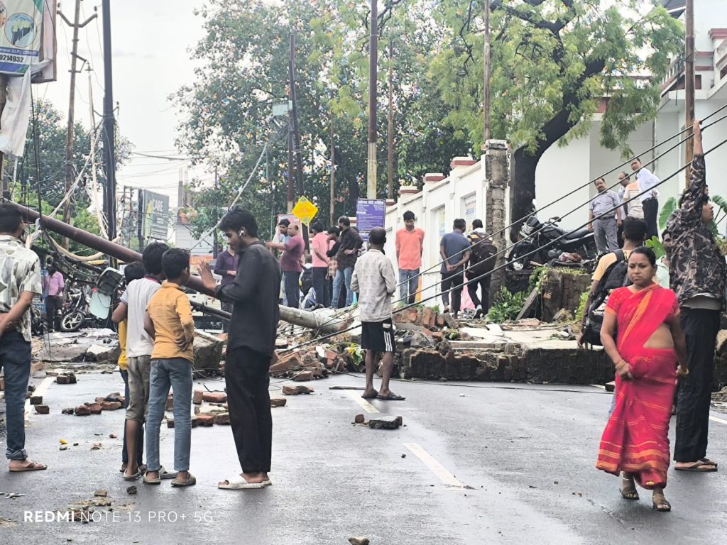 सुल्तानपुर/सुबह 7 बजे हुई मूसलाधार बारिश से बस स्टेशन स्थित आयकर विभाग के बगल बाउंड्री गिर गयी।झटके से विद्युत पोल भी उखड़ गया।बढैय्याबीर मोहल्ले की तरफ तरफ जा रही सड़क पर गिरी दीवार।आवागमन हुआ बाधित ।दुर्घटना में एक विद्युत पोल भी गिर गया है।