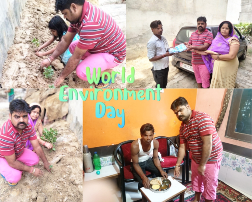 आवास के पास दो दो फल फूल के वृक्ष लगाए। साथ ही गरीब मजदूर जो कानो से बहरा और जवान से गूंगा था उसको न्यू वस्त्र दक्षिणा और भोजन कराकर उसको उसकी एक दिन की मजदूरी के बराबर रुपए देकर विदा किया।