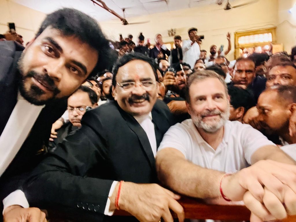 उन्हें सेना को लेकर कथित विवादास्पद टिप्पणी के मामले में कोर्ट में आज पेश होने के बाद 20-20 हजार रुपये के 2 निजी मुचलकों पर जमानत दी गई!राहुल गांधी ने निर्धारित समय पर कोर्ट में पेश होकर सरेंडर किया था!20-20 हजार रुपये के 2 निजी मुचलके दाखिल करने होंगे जमानत मिलने के बाद राहुल गांधी को भविष्य में कोर्ट के निर्देशों का पालन करना होगा!राहुल गांधी के खिलाफ सेना को लेकर की गई टिप्पणी के मामले में मानहानि का मुकदमा दर्ज किया गया था!कोर्ट ने उन्हें सममन जारी कर कोर्ट में पेश होने का निर्देश दिया था!राहुल गांधी की पेशी की जानकारी मिलते ही बड़ी संख्या में कांग्रेस कार्यकर्ता और नेता कोर्ट परिसर के बाहर जुट गए थे!जिसमें बहुत से अभिवक्ताओं ने सेल्फी भी लिया, राहुल गांधी ने उन सभी का हाल चाल भी लिया, राहुल गांधी को देखकर अधिवक्ताओं में खुशी देखने को मिली!