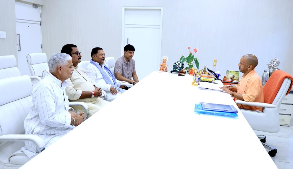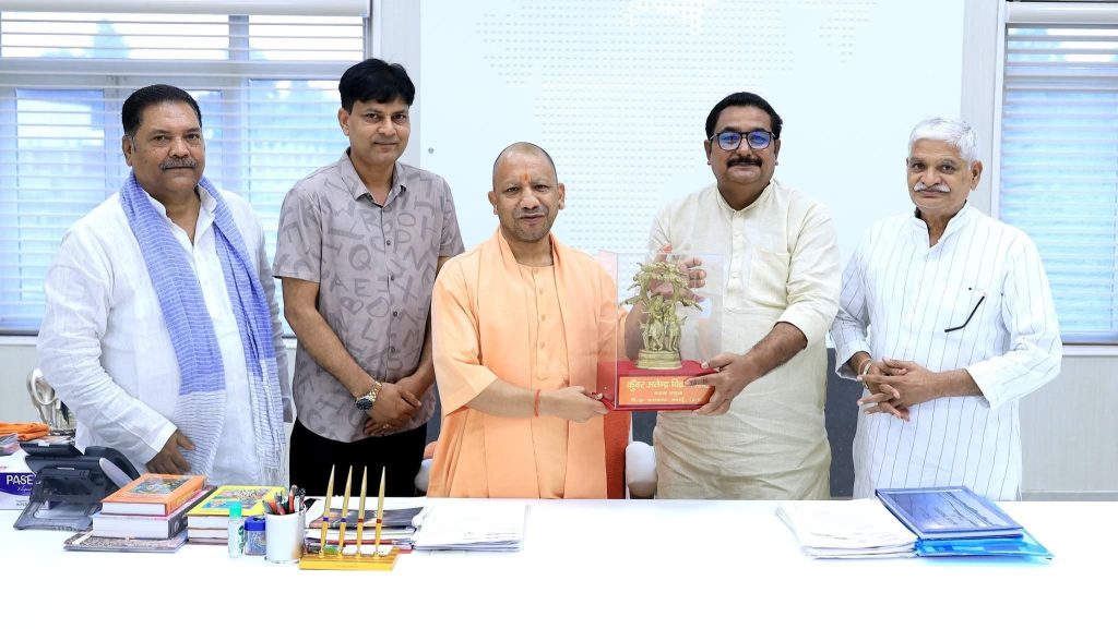 मुख्यमंत्री से शिष्टाचार भेंट के दौरान विधायक के साथ डीसीडीएफ चेयरमैन रवेन्द्रपाल सिंह, जिला महामंत्री भाजपा पं० शारदाकांत (शीकू भईया) एवं गौतम संदेश के प्रधान सम्पादक वी.पी.गौतम ने भी शिष्टाचार भेंट की।