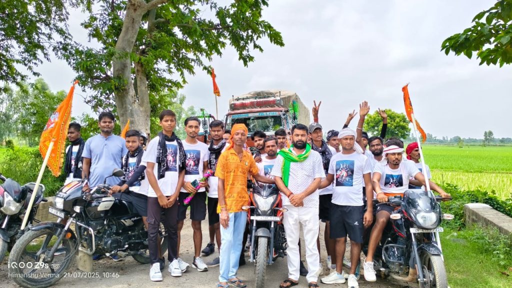श्रावण मास की द्वितीय सोमवार को डाक कांवड़ यात्रा का शुभारंभतहसील फतेहपुर जिला बाराबंकी उत्तर प्रदेशपत्रकार शिवकुमार वर्मामोबाइल नंबर 8174048 251आज तहसील व ब्लॉक फतेहपुर की ग्राम पंचायत गौरा गजनी के नरायनपुर के लिए शिव भक्तों ने भगौली तीर्थ सजल भरकर लोधेश्वर महादेव महादेवा रामनगर को आज डाक कांवड़ यात्रा का सुबह शुभआरंभ किया गयाडाक कांवड़ यात्रा के सभी शिव भक्तों पर भारतीय किसान यूनियन भानु गुट फतेहपुर ब्लॉक अध्यक्ष हंसराज वर्मा ने सभी शिव भक्तों का उत्साहवर्धन एवं जलपान की व्यवस्था कीजिसमें भारतीय किसान यूनियन के सभी सदस्यों का बहुत बड़ा योगदान रहा और उन्होंने बताया कि जब भी शिव भक्तों की टोली यहां से निकलेगी तब महादेव की कृपा से कुछ ना कुछ अपना योगदान देता रहूंगाडाक कांवड़ यात्रा को सफल बनाने व शिव चरणों में जल चढ़ाने वाले मुख्य रूप से भक्तों में शुभम उपेंद्र अमित अंकित आकाश अंश आयुष हिमांशु नागेंद्र नीरज राजा सनी सुल्तान उर्दू आशीष चंदन मौसम शरद दिलीप वर्मा सर्वेश वर्मा सरोज वर्मा दिनेश वर्मा गोविंद नागेंद्र नरेंद्र वर्मा सुरेश वर्मा आदि आदि शिव भक्तों ने दाग कावड़ यात्रा मैं शामिल होकर अपने जीवन को धन्य बनायातथा सभी शिव भक्त मिलकर आदि शक्ति परमपिता महादेव से प्रार्थना की की सभी देशवासी स्वस्थ एवं दीर्घायु हो ऐसी कामना की