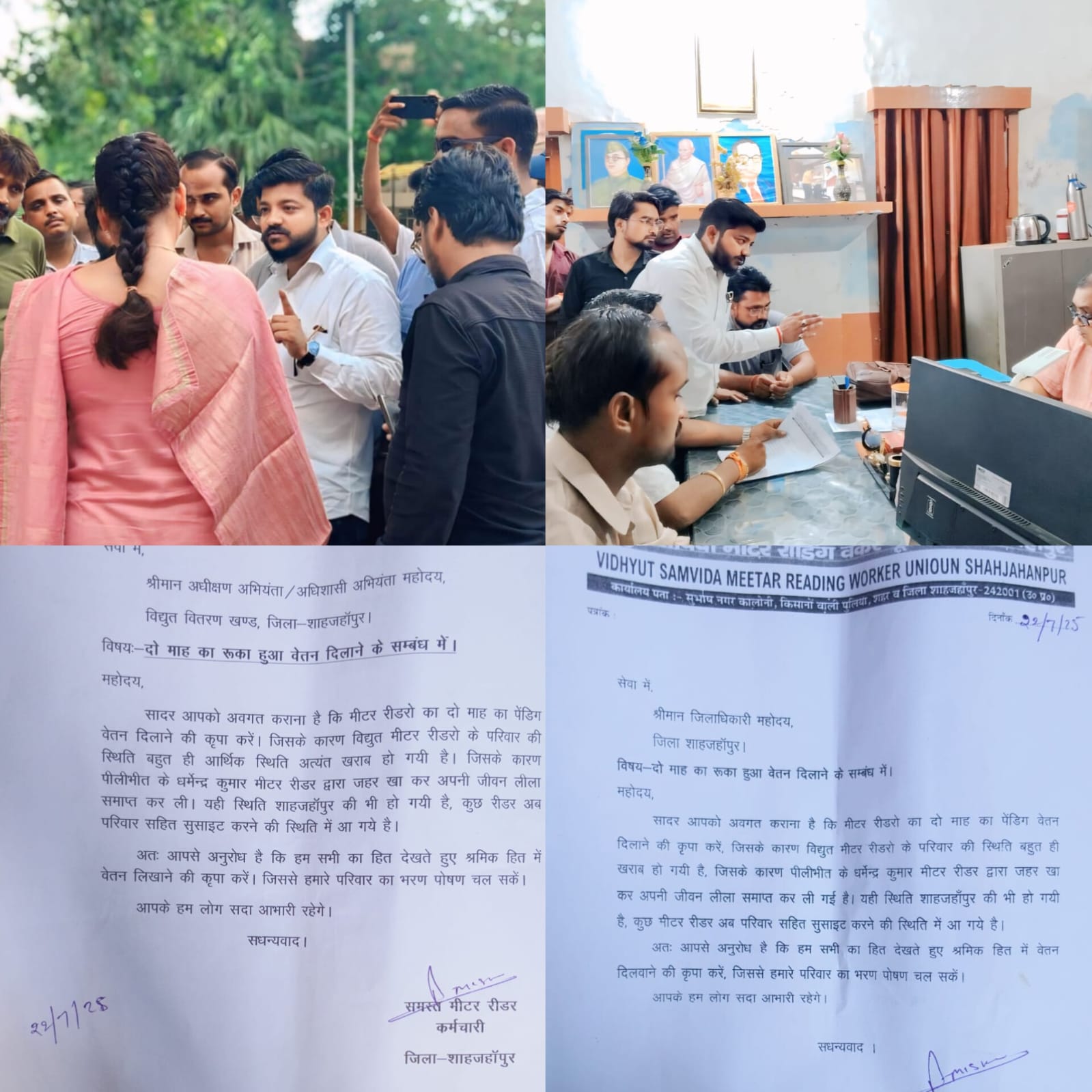 विद्युत मीटर रीडर की दो माह से सेलरी न देने के सम्वन्ध में विद्युत संविदा मीटर रीडिंग वर्कर यूनियन शाहजहांपुर के वैनर तले जिलाधिकारी संबोधित ज्ञापन उपजिलाधिकारी सदर को सौंपा ,,,