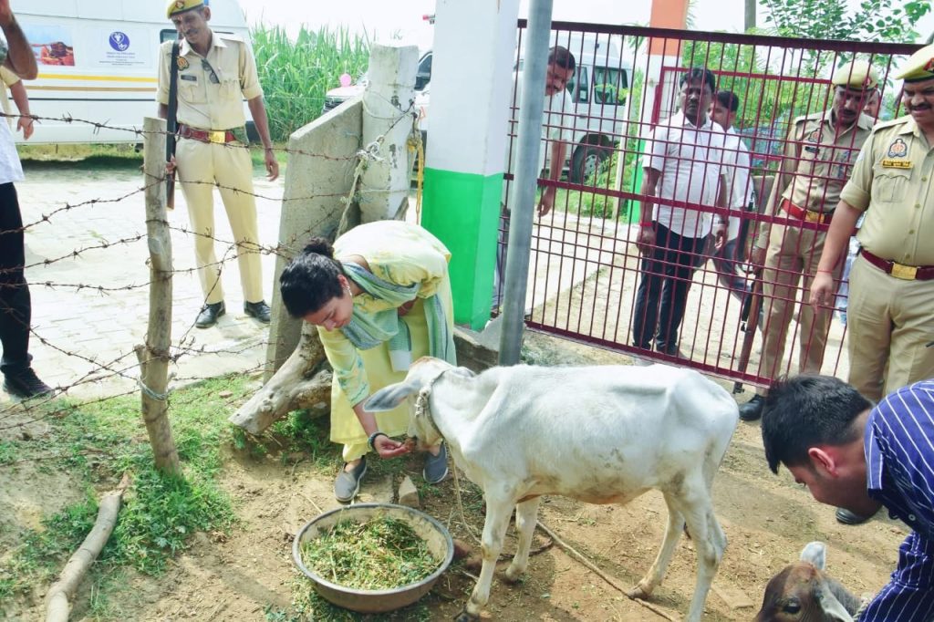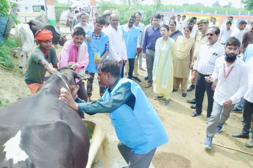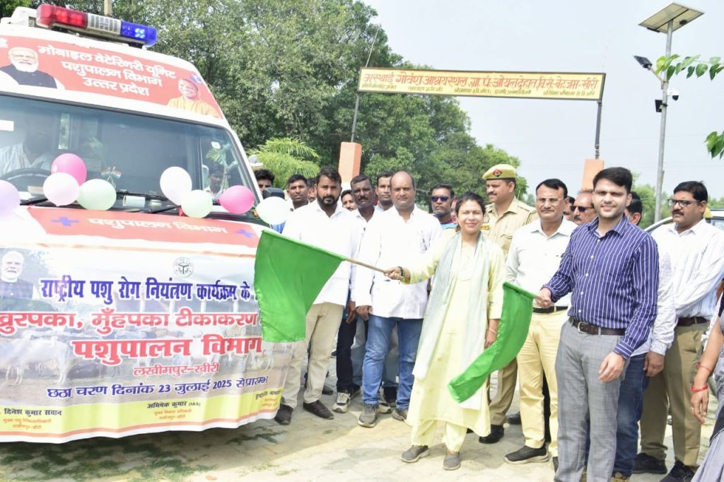 23 जुलाई लखीमपुर खीरी, राष्ट्रीय पशु रोग नियंत्रण कार्यक्रम के तहत खुरपका-मुँहपका रोग से बचाव के लिए शुरू हुए टीकाकरण अभियान का शुभारंभ बुधवार को डीएम दुर्गा शक्ति नागपाल और सीडीओ अभिषेक कुमार ने किया। ओयल देहात स्थित गो आश्रय स्थल पर उन्होंने एंबुलेंस को हरी झंडी दिखाकर रवाना किया और टीकाकरण टीम को वैक्सीन बॉक्स वितरित किए।इस मौके पर डीएम व सीडीओ ने खुद टीकाकरण की शुरुआत कराई और अपने समक्ष संरक्षित गोवंशों को टीका लगवाया। इसके बाद उन्होंने गोवंशों को हरा चारा, चना और गुड़ खिलाया। डीएम ने आश्रय स्थल का निरीक्षण करते हुए सफाई, चारे की उपलब्धता और चिकित्सा व्यवस्था की भी पड़ताल की। साथ ही छायादार, फलदार व औषधीय पौधों का रोपण कर पर्यावरण संरक्षण का संदेश दिया। डीएम ने सीवीओ को स्पष्ट निर्देश दिए कि जिले का कोई भी पशु टीकाकरण से वंचित न रह जाए। अभियान की नियमित व सघन मॉनिटरिंग की जाए, ताकि लक्ष्य के अनुरूप कार्य सुनिश्चित हो सके।डीएम दुर्गा शक्ति नागपाल ने कहा कि राष्ट्रीय पशु रोग नियंत्रण कार्यक्रम केवल एक टीकाकरण मुहिम नहीं, बल्कि गोवंशों के स्वास्थ्य, किसानों की आय और ग्रामीण अर्थव्यवस्था की सुरक्षा से जुड़ी बड़ी पहल है। हमने यह सुनिश्चित किया है कि हर आश्रय स्थल पर समय से टीकाकरण हो, चारे-पानी की कोई कमी न हो और गोवंशों को मानवीय संवेदना के साथ देखा जाए। सीडीओ अभिषेक कुमार ने कहा कि हर गोवंश तक टीकाकरण पहुंचे, यही हमारी प्राथमिकता है। आश्रय स्थलों की व्यवस्था में कोई कमी नहीं रहने दी जाएगी। 10.43 लाख पशुओं के टीकाकरण का लक्ष्य, डोर-टू-डोर पहुंचेंगी टीमें सीवीओसीवीओ डॉ. दिनेश कुमार सचान ने बताया कि इस चरण में 10 लाख 43 हजार 972 गोवंशों का टीकाकरण करने का लक्ष्य निर्धारित किया गया है। टीकाकरण कार्य को सुचारु रूप से संपन्न कराने के लिए सभी ब्लॉकों पर टीमें गठित की गई हैं, जो डोर-टू-डोर जाकर पशुओं का टीकाकरण करेंगी। अभियान में 15 सचल वाहनों के साथ-साथ 15 एंबुलेंस की भी तैनाती की गई है। कार्यक्रम के दौरान ग्राम प्रधान, सहायक विकास अधिकारी (पंचायत), डिप्टी सीवीओ डॉ हनी सक्सेना, डॉ अरविंद मोहन वर्मा, पशु चिकित्सक डॉ राकेश, डॉ सौरभ सिंगाही, डॉ अनिरुद्ध मौजूद रहे।