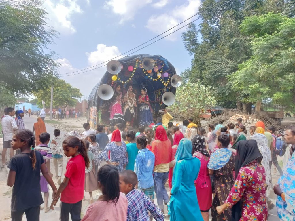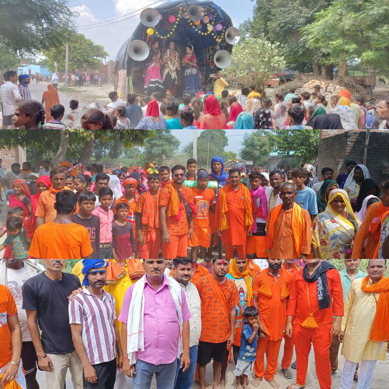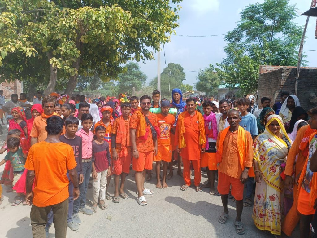 जत्था जुलूस की शक्ल में पूरे गांव में होते हुए गुजरा जिसमें शामिल बड़े बुजुर्ग के साथ-साथ बच्चे व महिलाएं डीजे की धुन पर थिरकते रहे इस दौरान पूरा ग्राम हर हर महादेव नारों से गुजायमान होता रहा शिव भक्ति डीजे पर बज रहे गाने चल रे कांवरिया शिव के धाम वह मेरा शिव सन्यासी हो गया मेला मने घुमा दे भोले आदि गानों में जमकर डांस किया इस दौरान समस्त ग्राम वासी मौजूद रहे।
