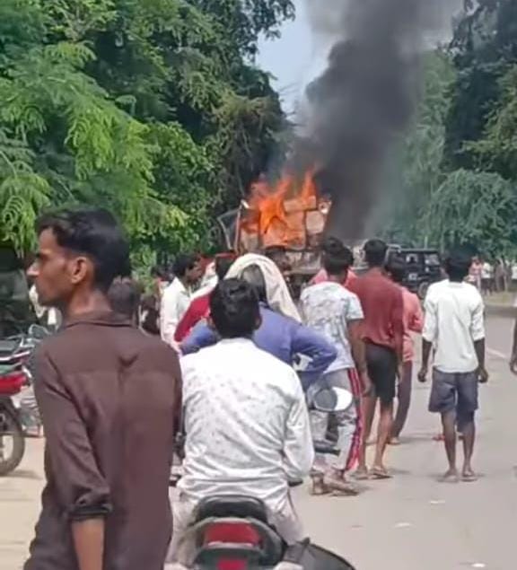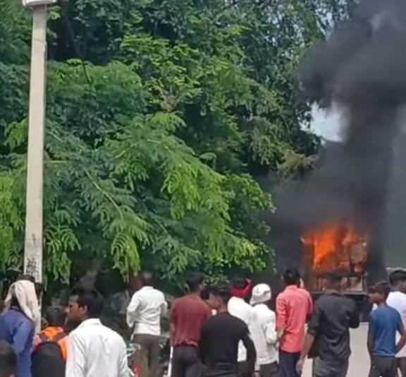 आग लगते ही हाइवे पर अफरा-तफरी मच गई। कुछ देर में आग ने विकराल रूप धारण कर लिया। ट्राली में रखा सामान और डीजे पूरी तरह जलकर खाक हो गए। सिलेंडर में आग लगने पर वह बहुत दूर जाकर गिरा।